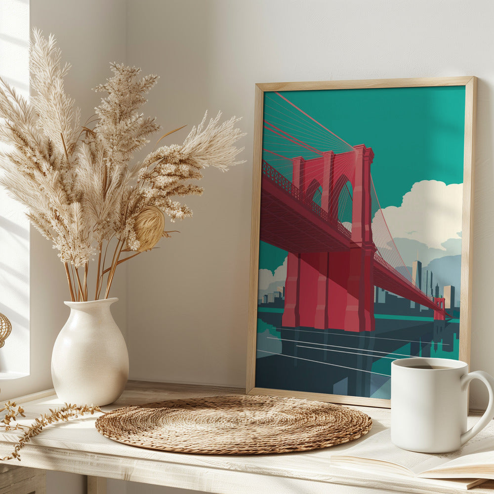 Explore our many print options for Brooklyn Bridge NYC Red by artist Remko Heemskerk.