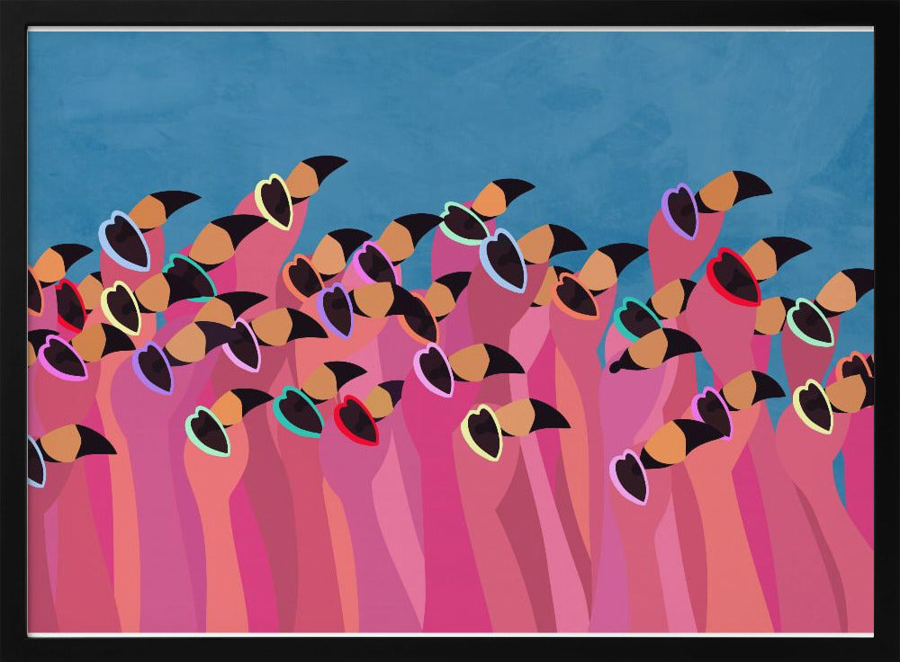 Explore our many print options for Flock flamingo blue by artist Sarah Manovski.