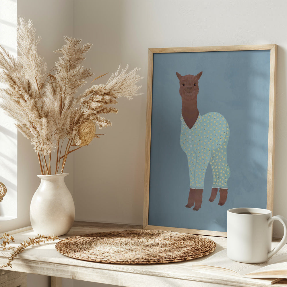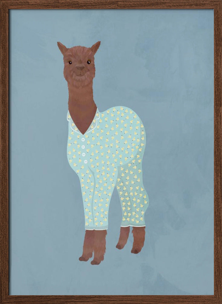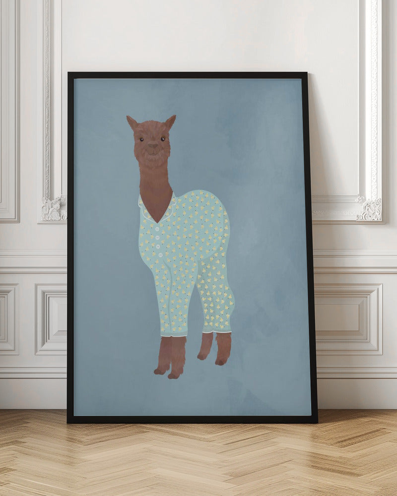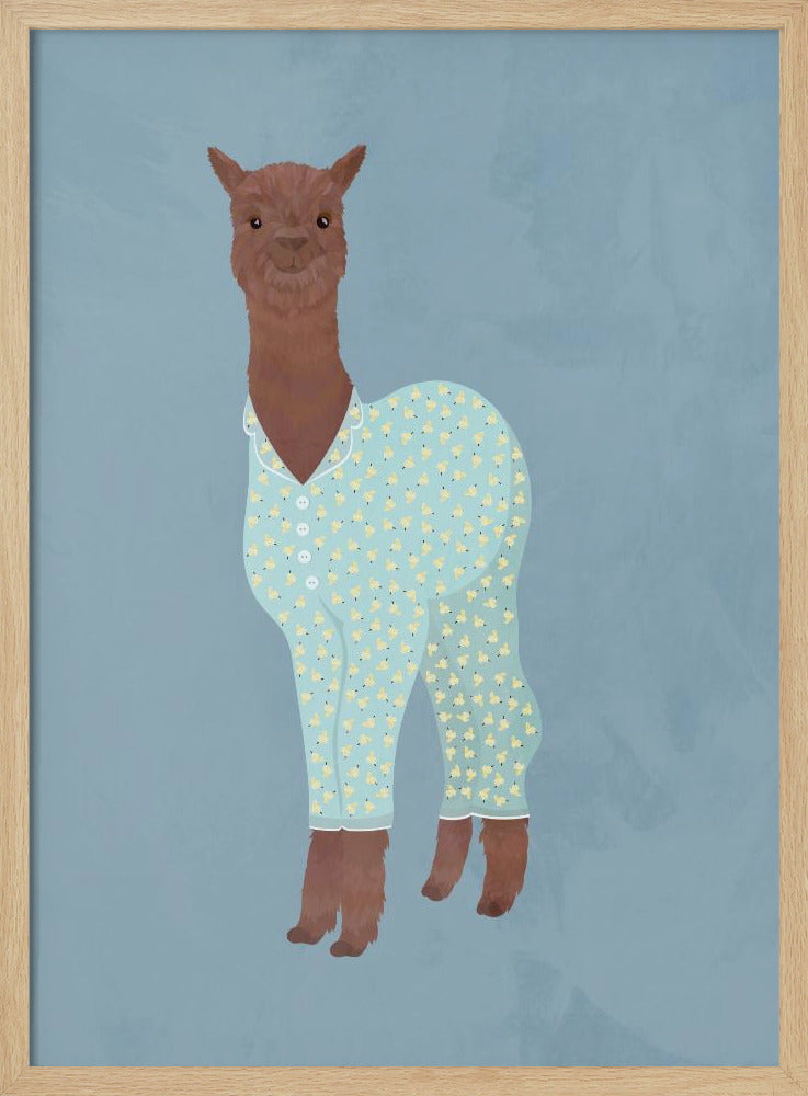 Explore our many print options for Llama In Pjs Banana blue by artist Sarah Manovski.