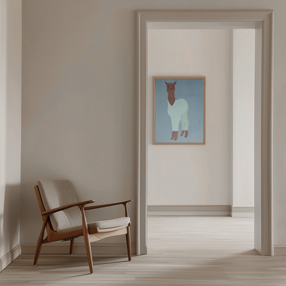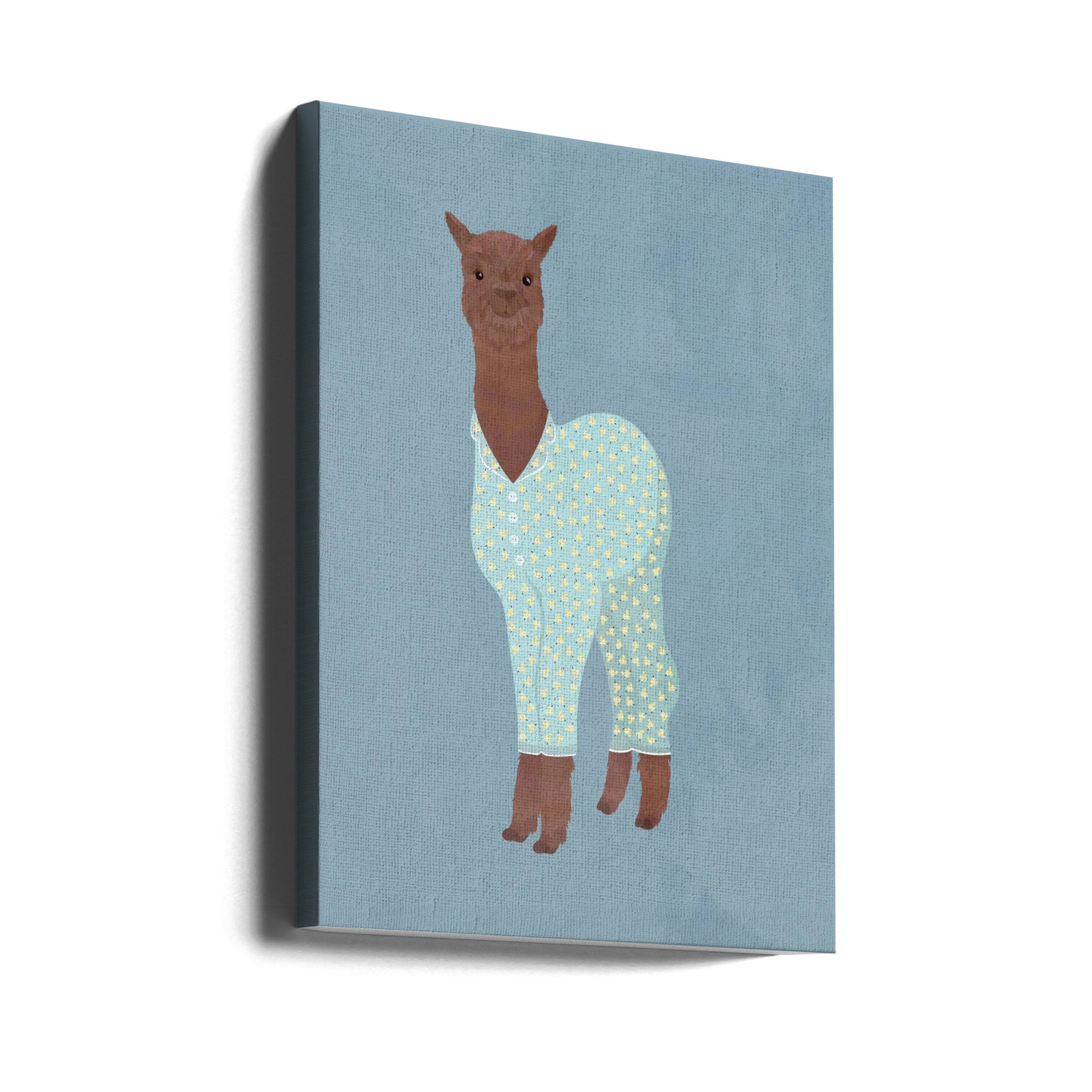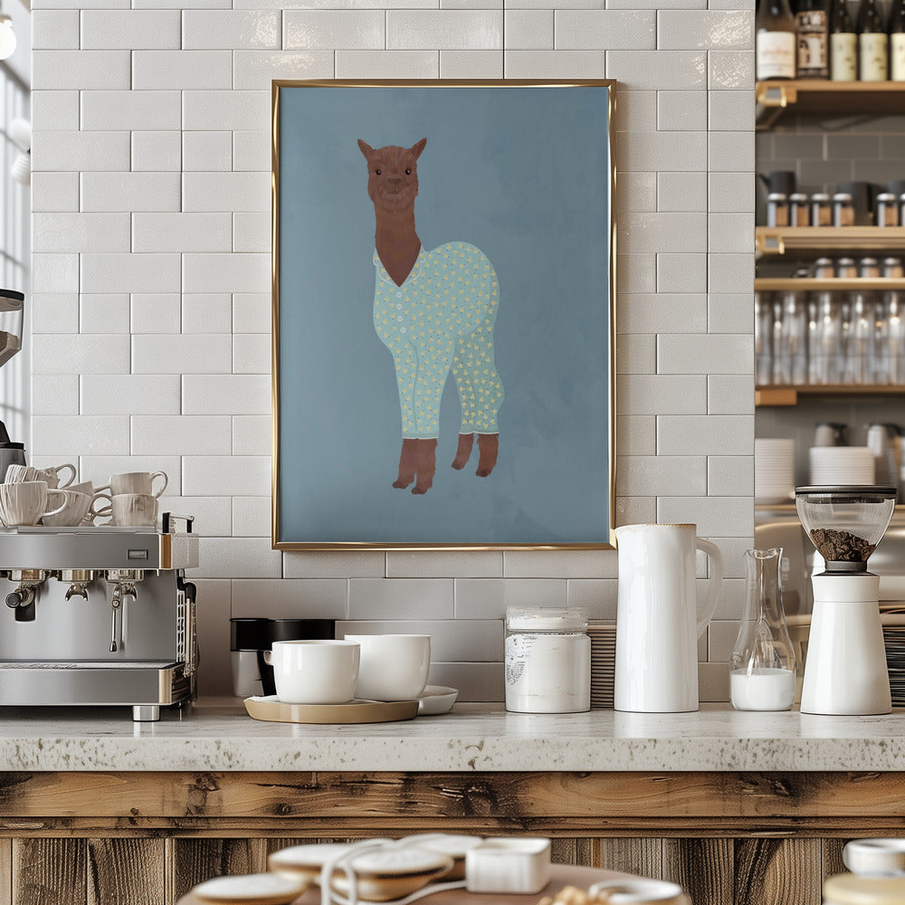 Explore our many print options for Llama In Pjs Banana blue by artist Sarah Manovski.