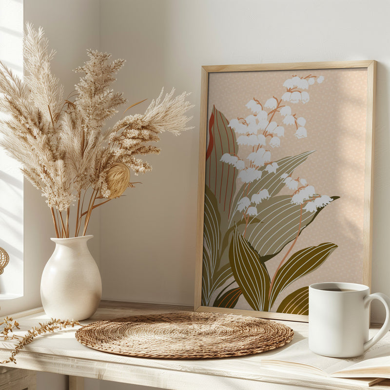 Explore our many print options for Big flowers Lily of the valley peach by artist Annick.