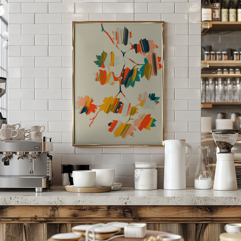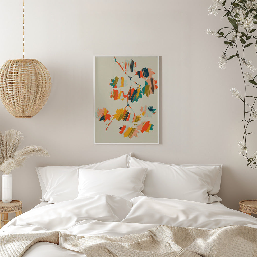 Explore our many print options for Colorful Hanging Maple Leaves by artist Annick.