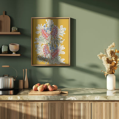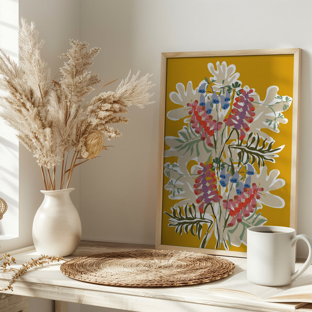 Framed Art Prints: Our framed art prints are printed onto a good quality textured art paper. A white border surrounds the design. A solid timber frame in one of four colours and a plexiglass front complete the piece.
