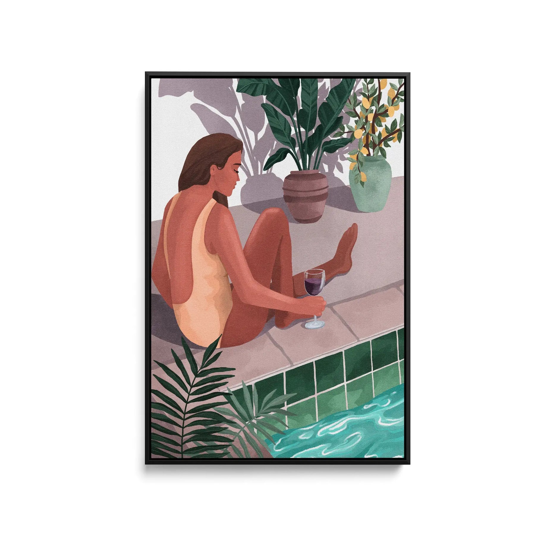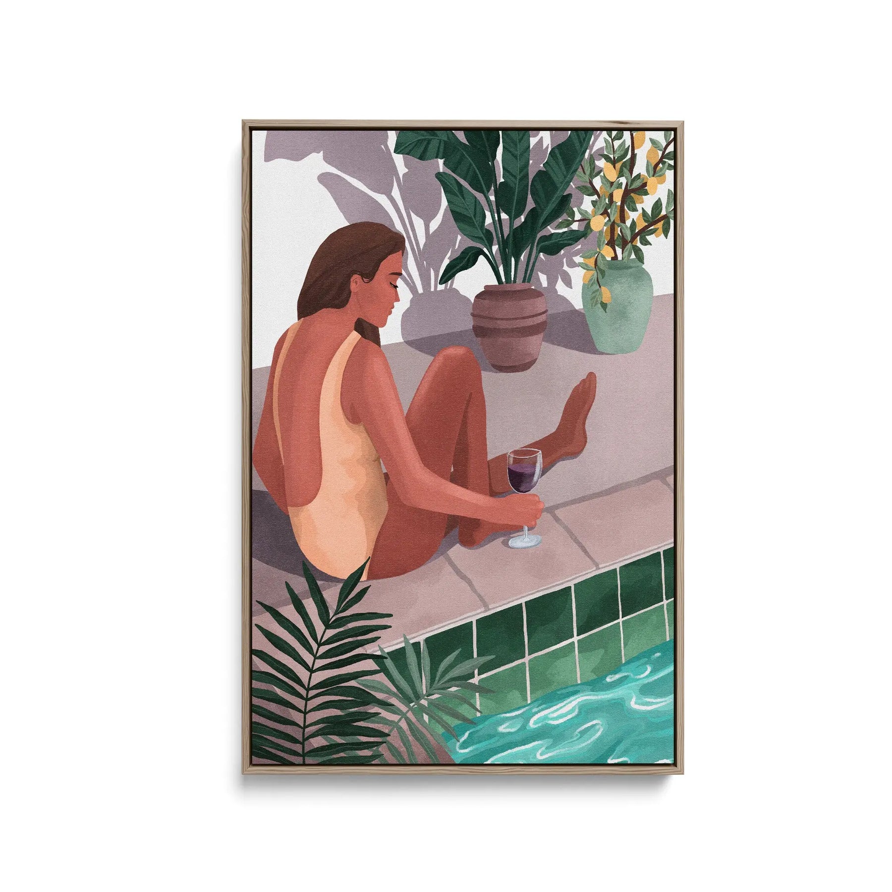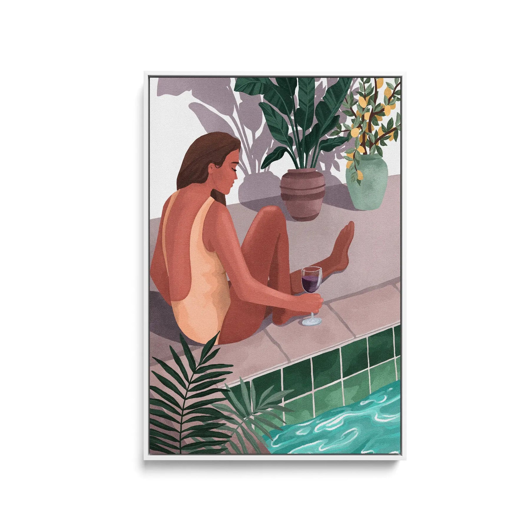 This gorgeous artwork by Goed Blauw is a beautiful contemporary portrait of a woman by a pool in bright, energetic colours.