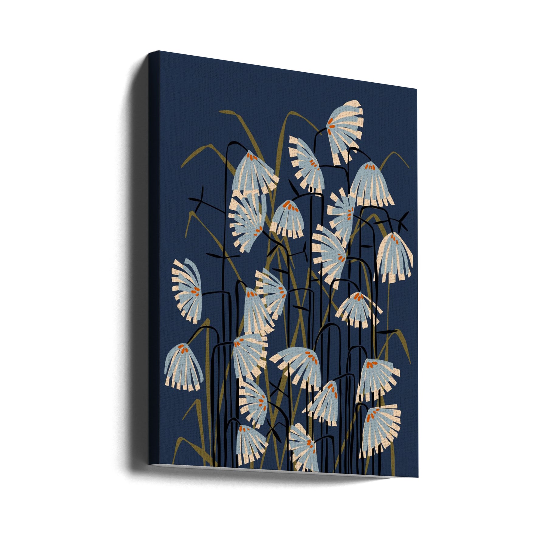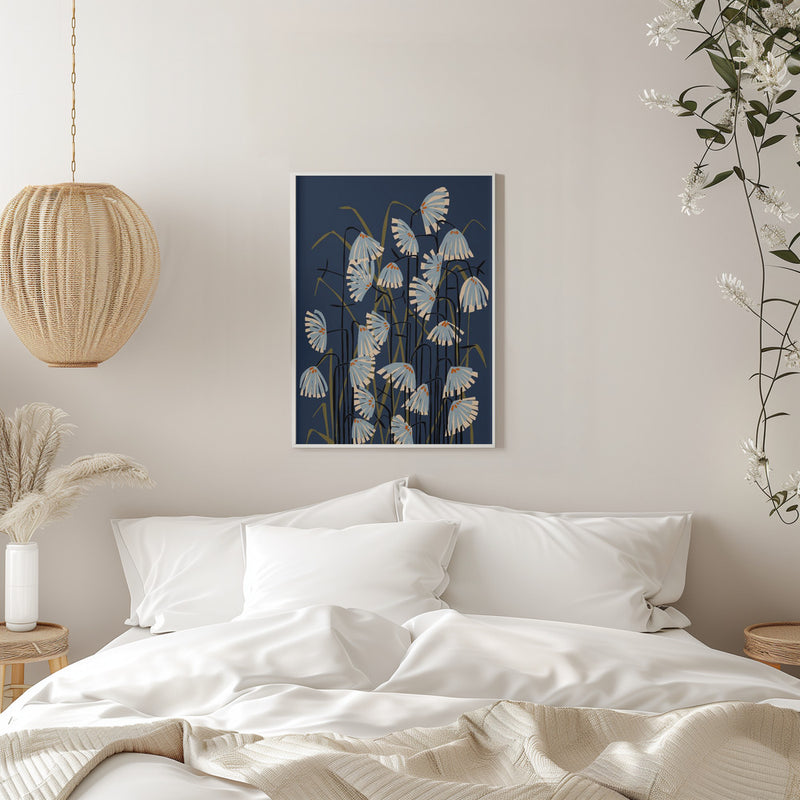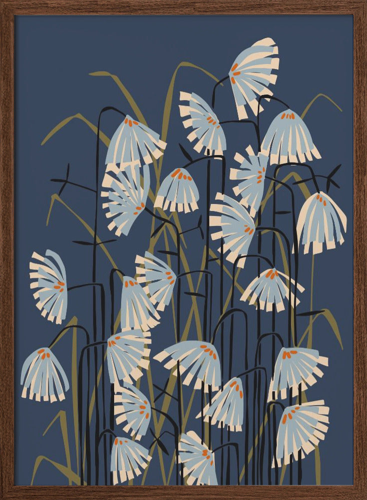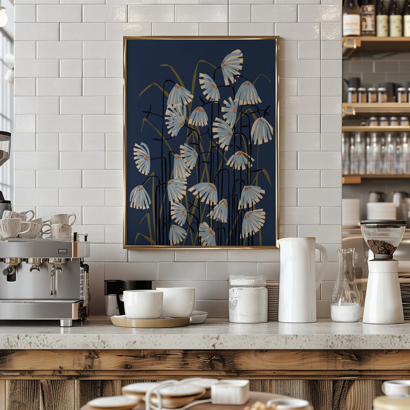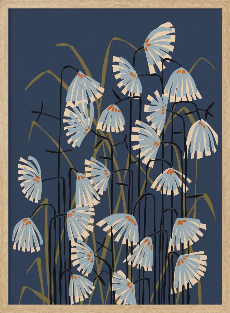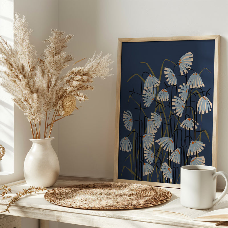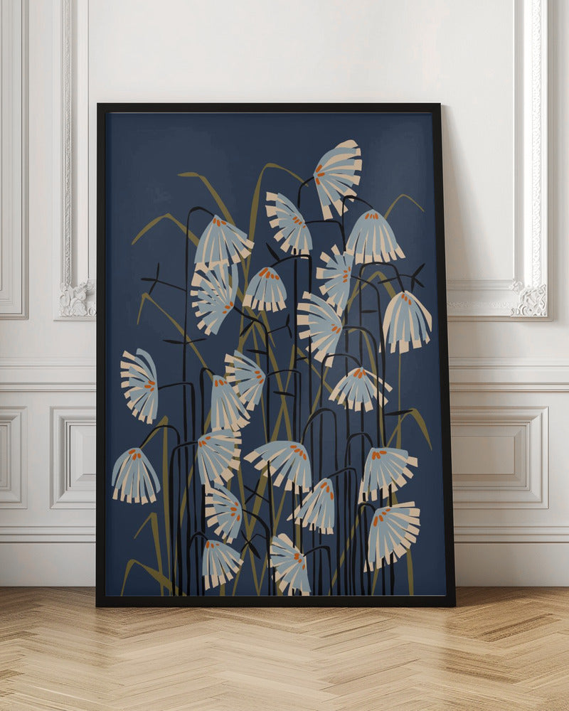 Explore our many print options for Linocut Flower Meadow Blue by artist Annick.