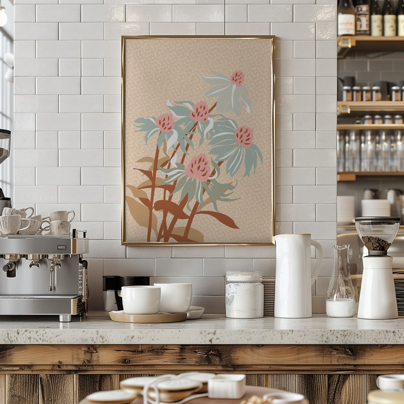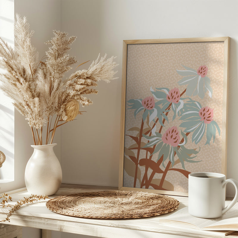 Framed Art Prints: Our framed art prints are printed onto a good quality textured art paper. A white border surrounds the design. A solid timber frame in one of four colours and a plexiglass front complete the piece.