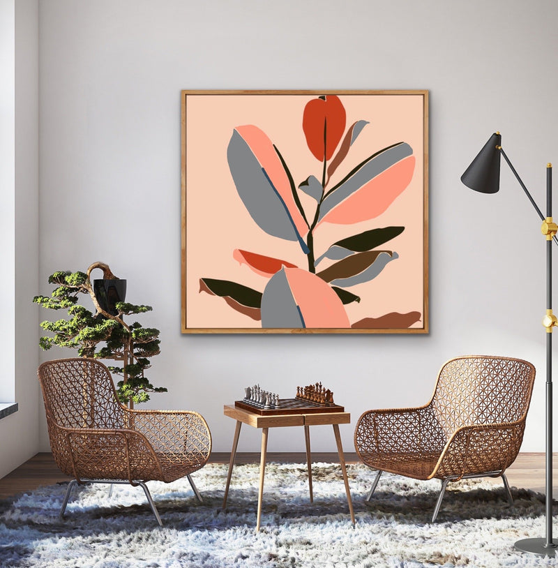 Featuring a rendering of a a fiddle leaf fig in pinks, peaches, blues and reds, it's sure to be a favourite and much-asked-about addition to your home.
