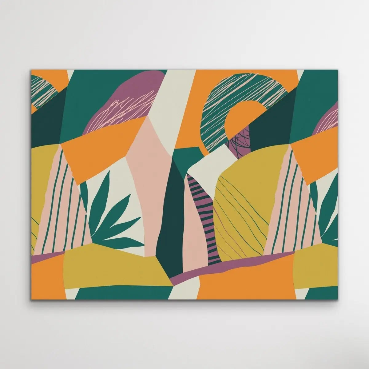 Wilderness- Green Orange Jungle Foliage Monstera Graphic Wall Art Print on Canvas