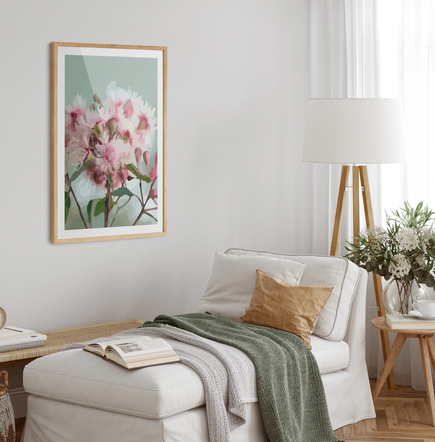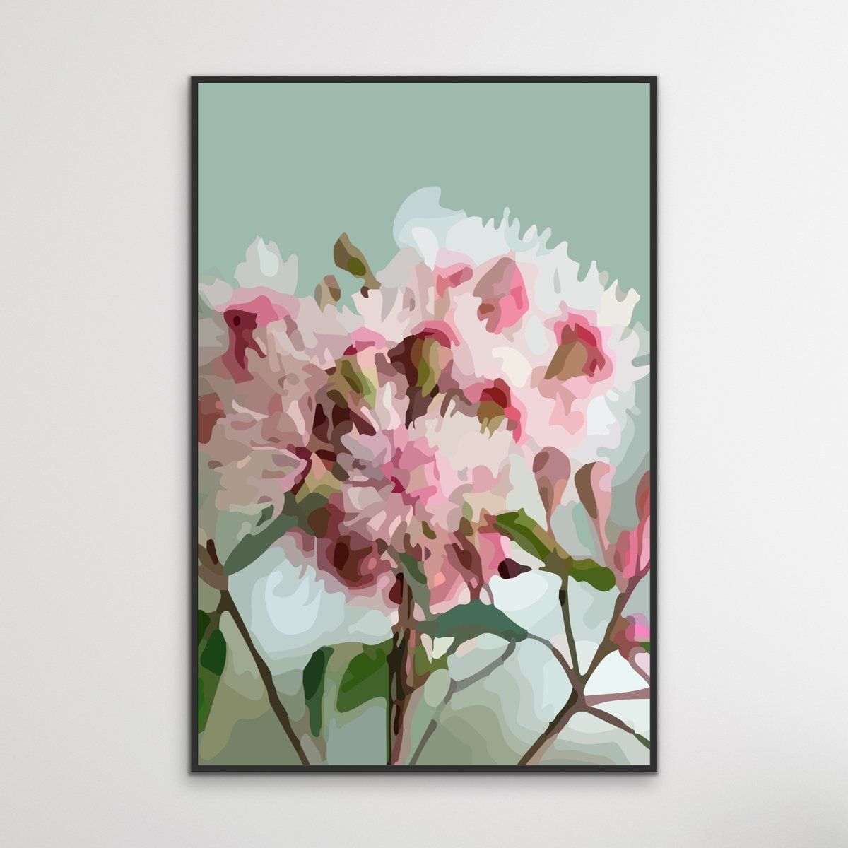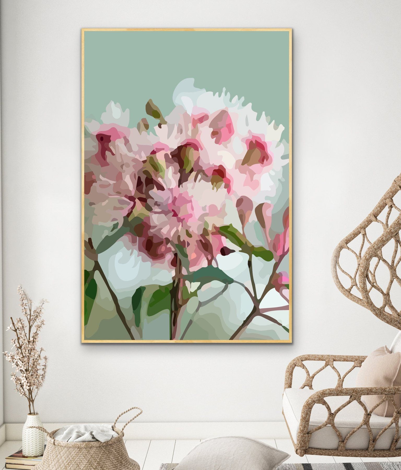 This fun contemporary print features a rendering Australian Gum Blossom against a light green background.