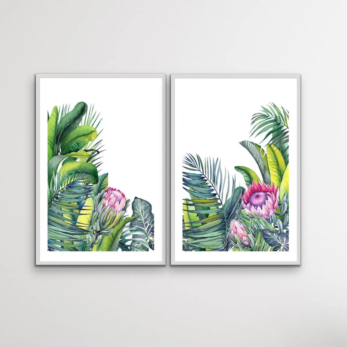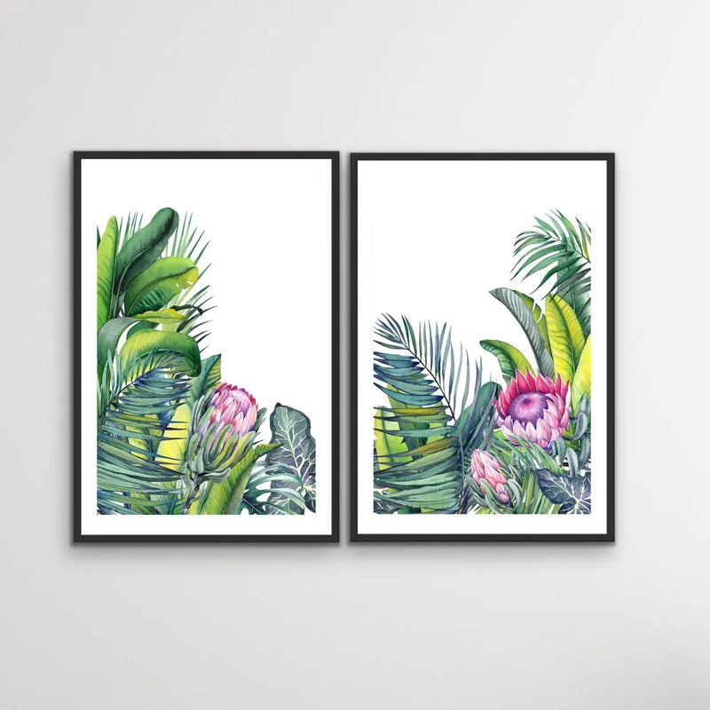 This two piece print set features watercolour illustrations of a beautitful tropical garden. This two piece print set is fun and colourful.