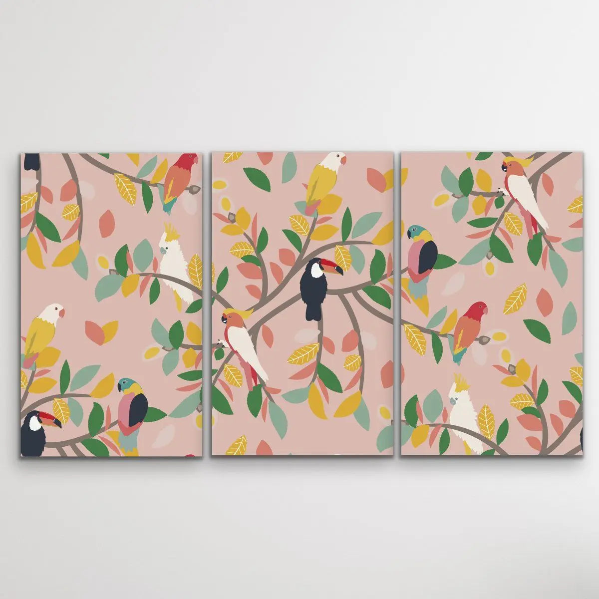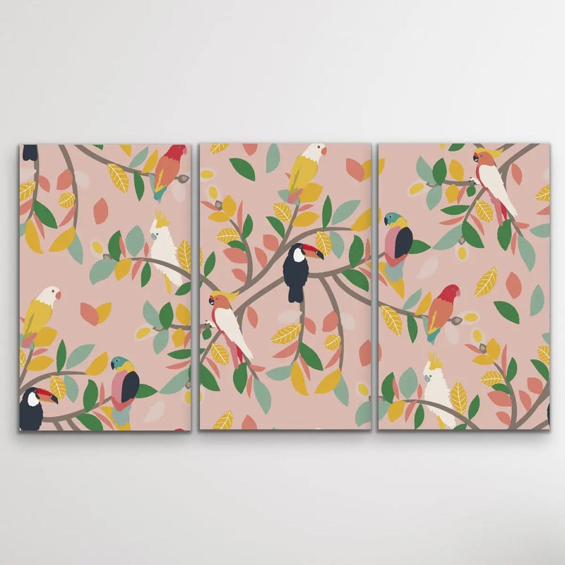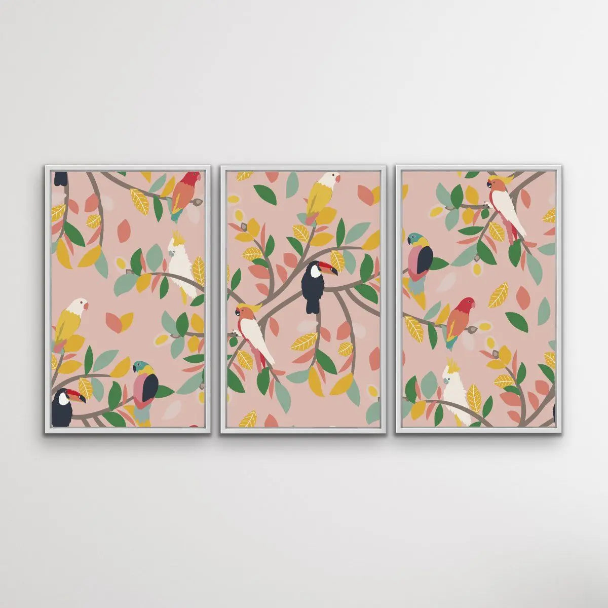 Aviary Pink Three Piece Bird Nature Floral Canvas Wall Art - I Heart Wall Art - Poster Print, Canvas Print or Framed Art Print