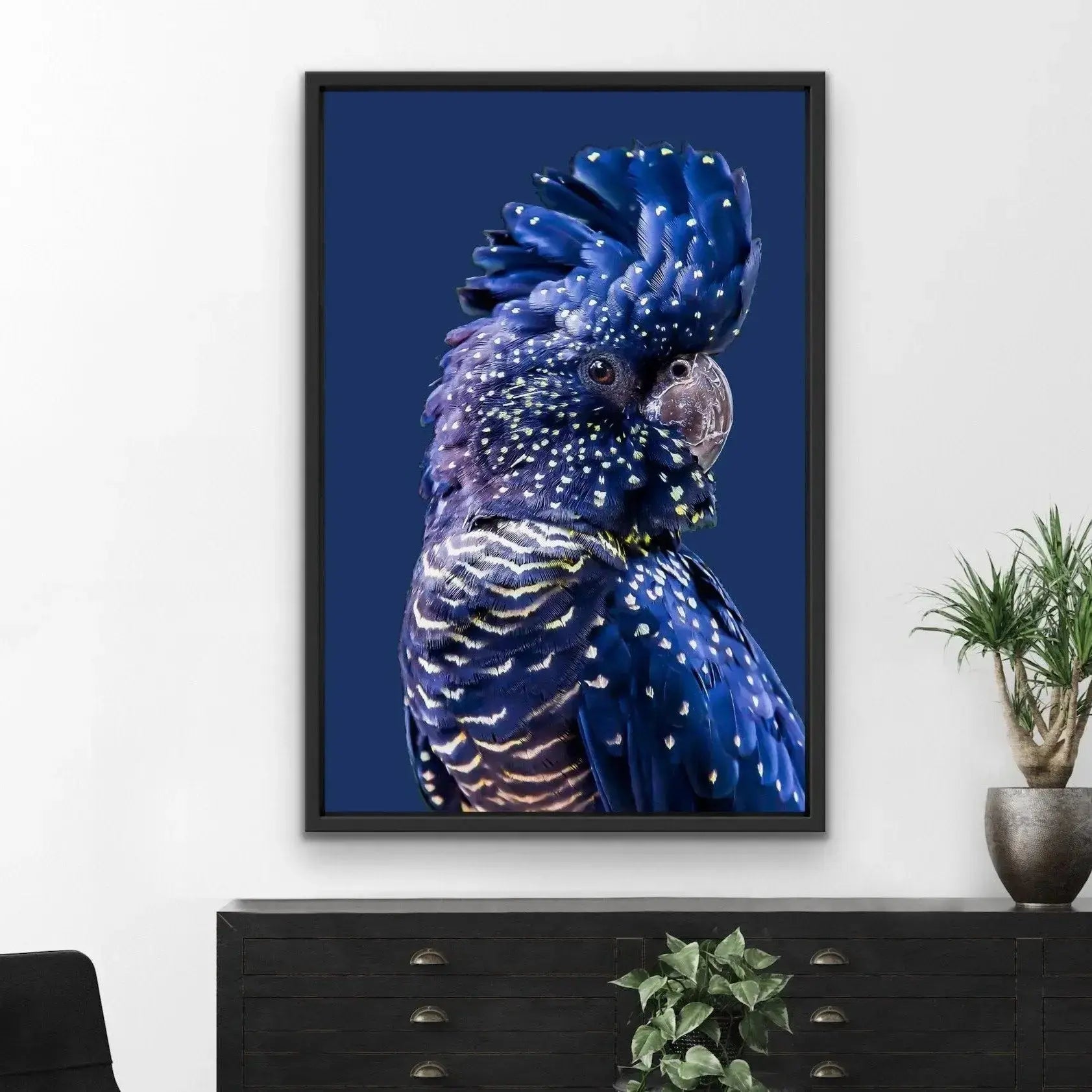 This beautiful black cockatoo isone of the prints from our two piece Black cockatoo wall art set, but he's so well-loved we've decided to offer him as a solo print on a classic navy blue background.