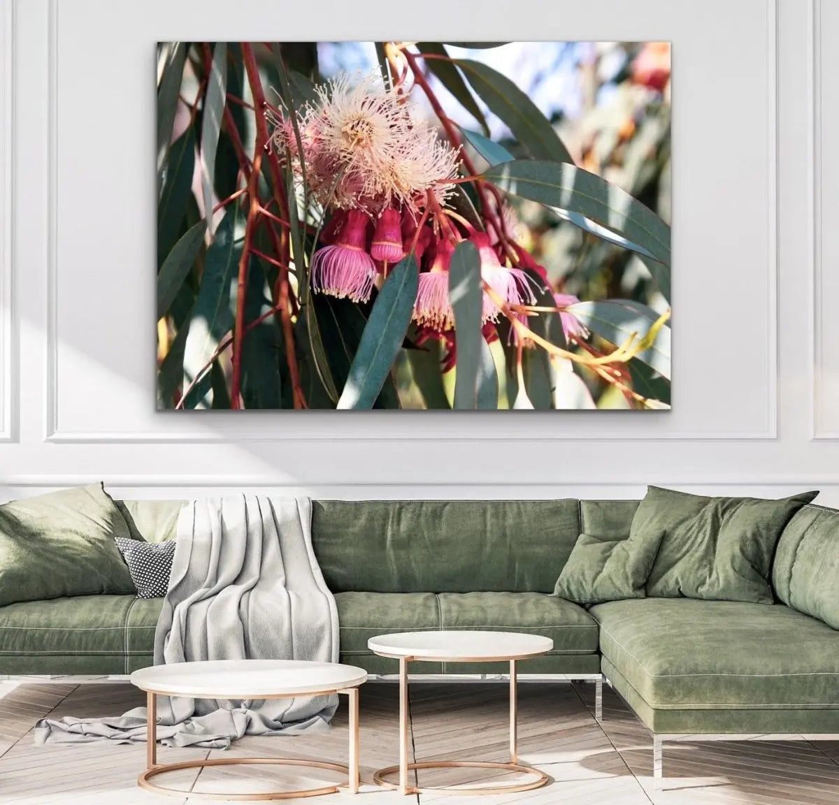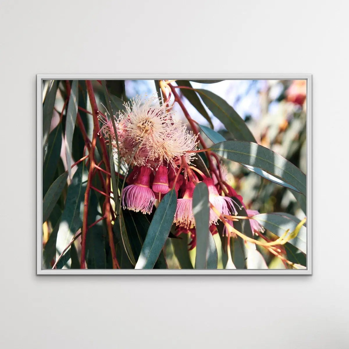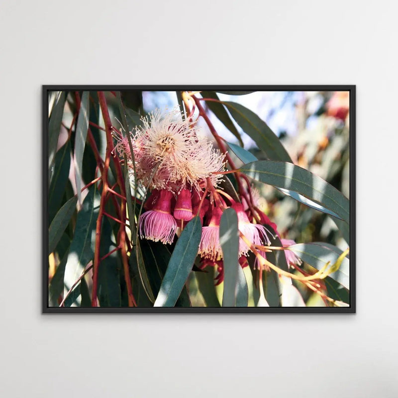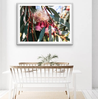 Showing a Eucalyptus flowering in the springtime, Blossom Days has stunning deep tones of pink and green.