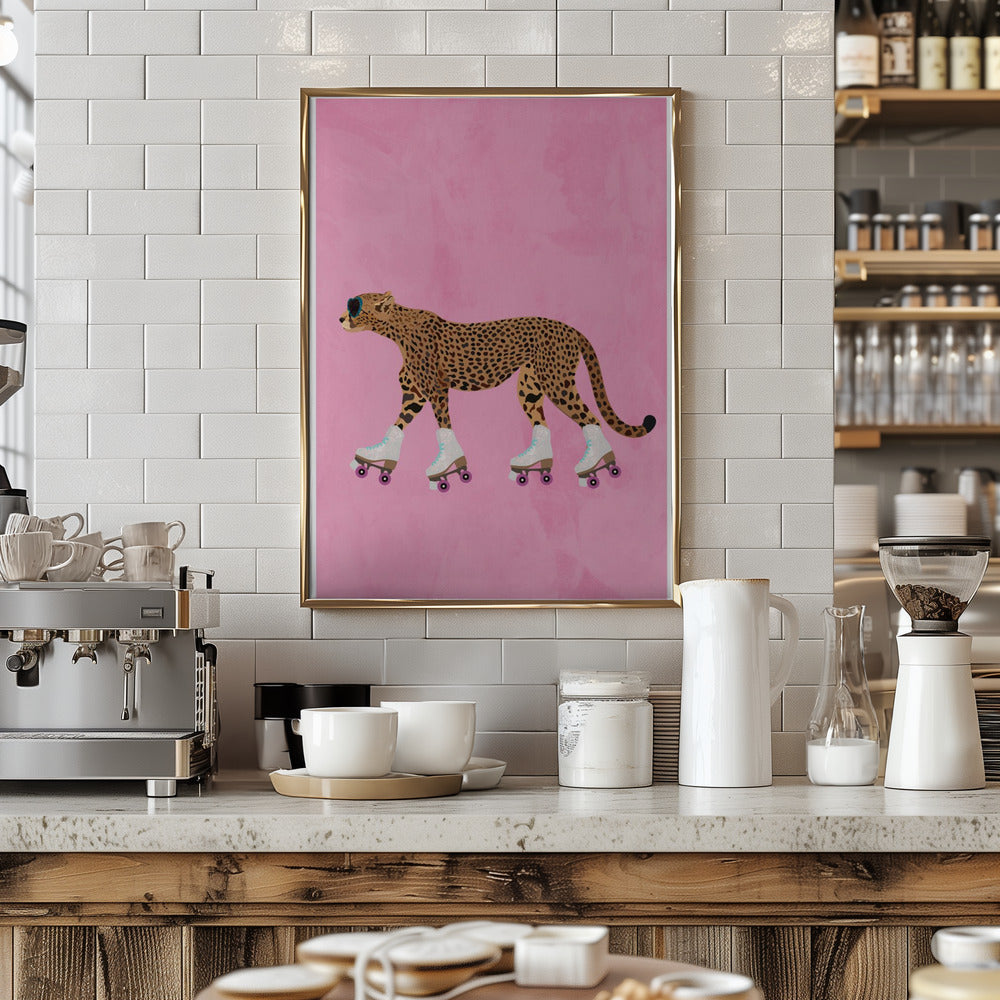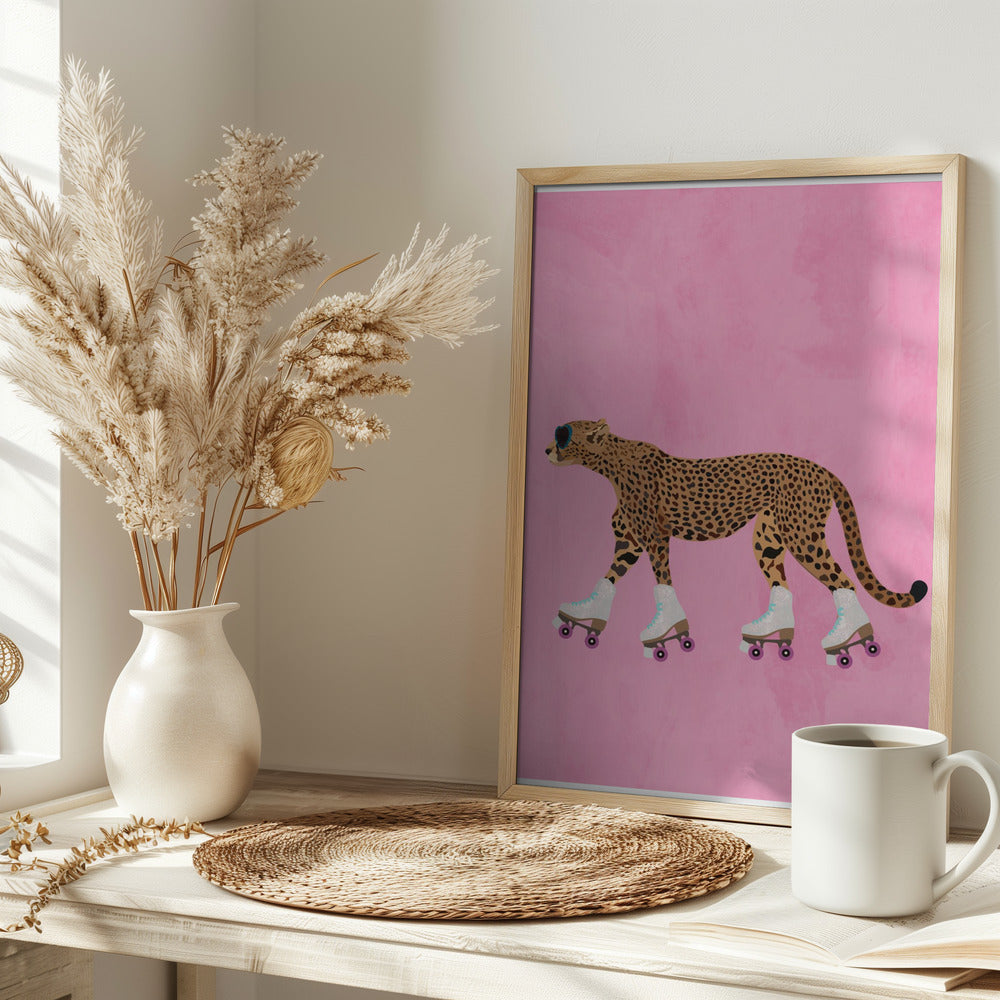Explore our many print options for Cheetah rollerskating by artist Sarah Manovski.