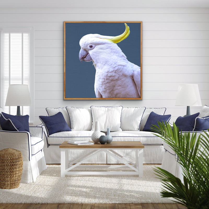 Cockatoo On Blue Linen - Original Cockatoo Australian Nature Wall Art Print on Canvas