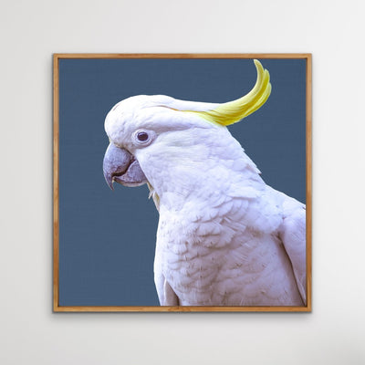 Cockatoo OnBlueLinenis an addition to our growing range of native Australianbird prints. It's background blue linen perfectly complements the bold Whites and yellows of this gorgeous sulphur crested cockatoo, making this piece an ideal choice for coastal decorating with an Australian twist.