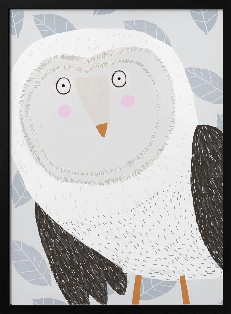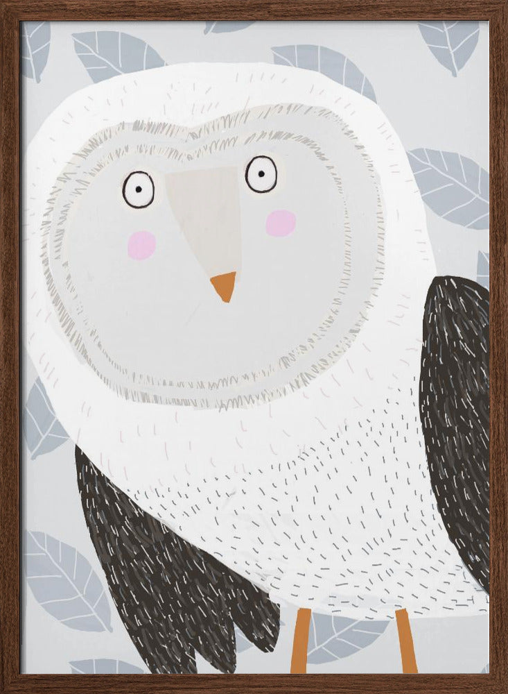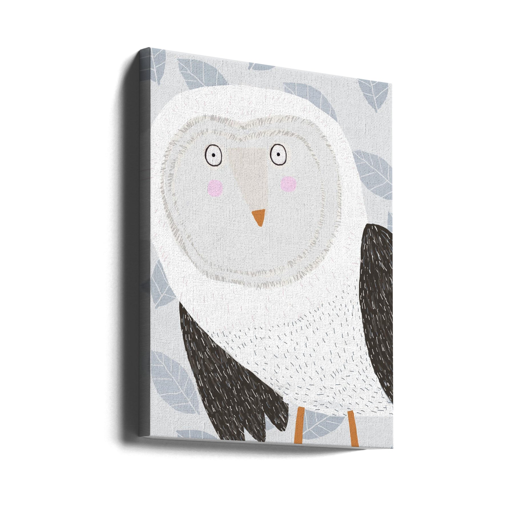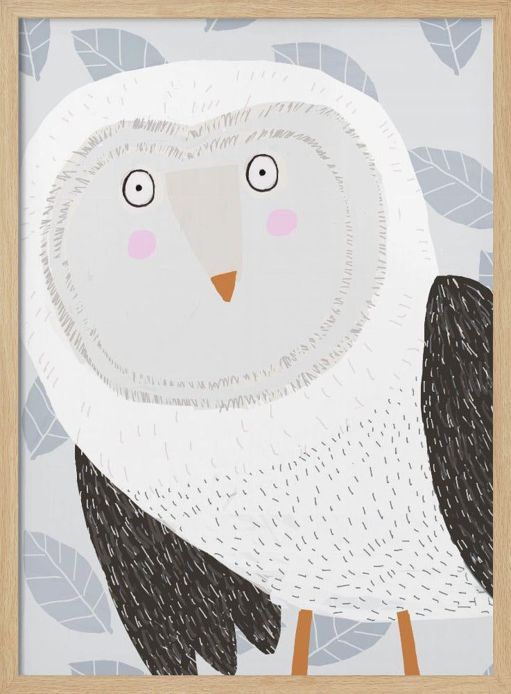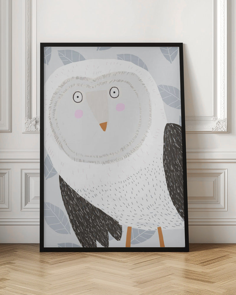 Explore our many print options for Funny Winter Owl with Grey Leaf Pattern by Artist Carla Daly by artist Carla Daly.