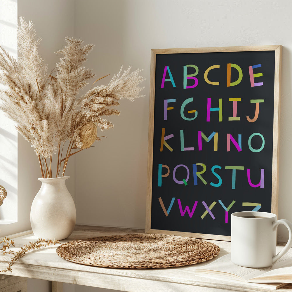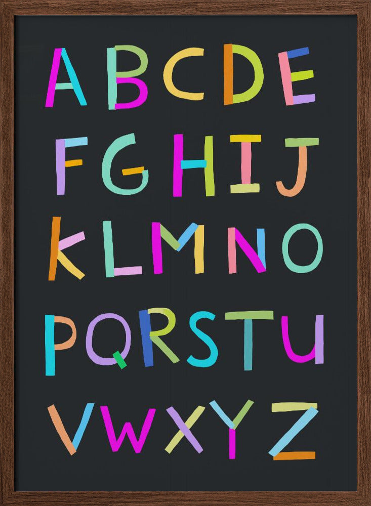 Explore our many print options for Hand Drawn Alphabet Letters on Black Background by Artist Carla Daly by artist Carla Daly.
