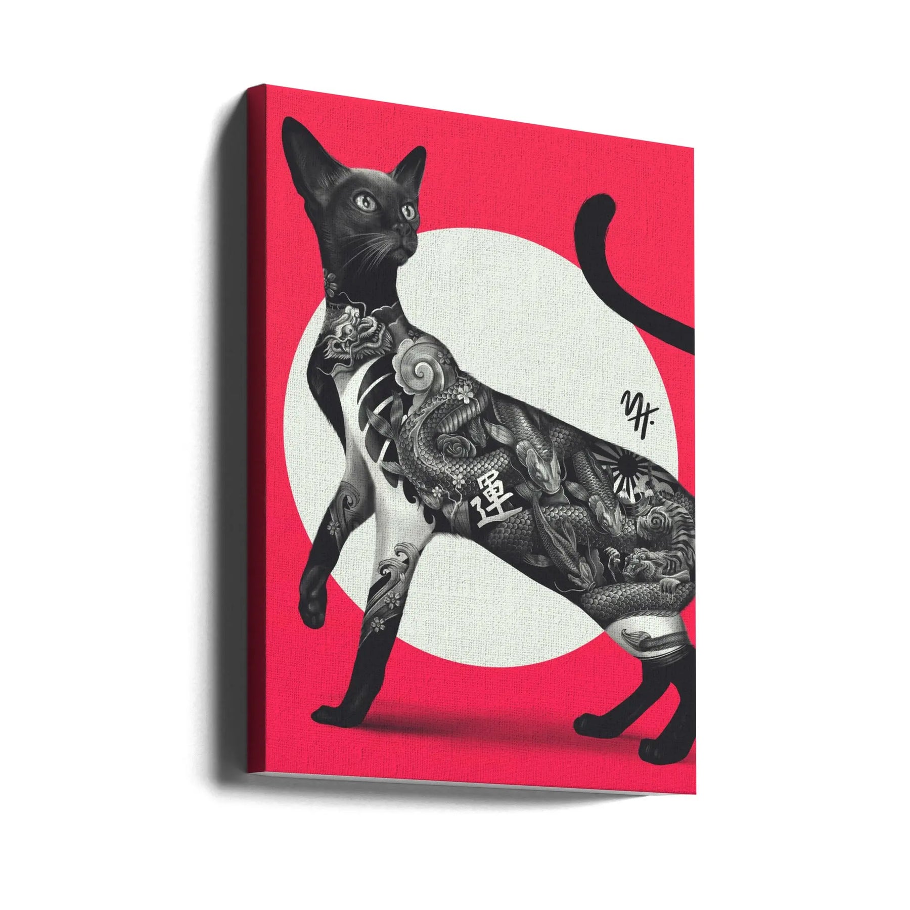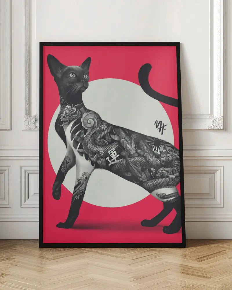 Explore our many print options for Japanese Cat Tattoo Red by artist Mark Harrison.