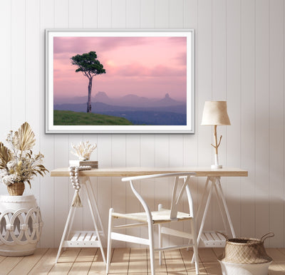 This beautiful photographic print shows the view from One Tree Hill in Maleny across to the Glasshouse Mountains. Perfect for any lover of this beautiful part of the world!