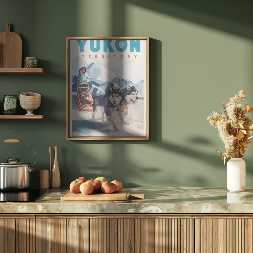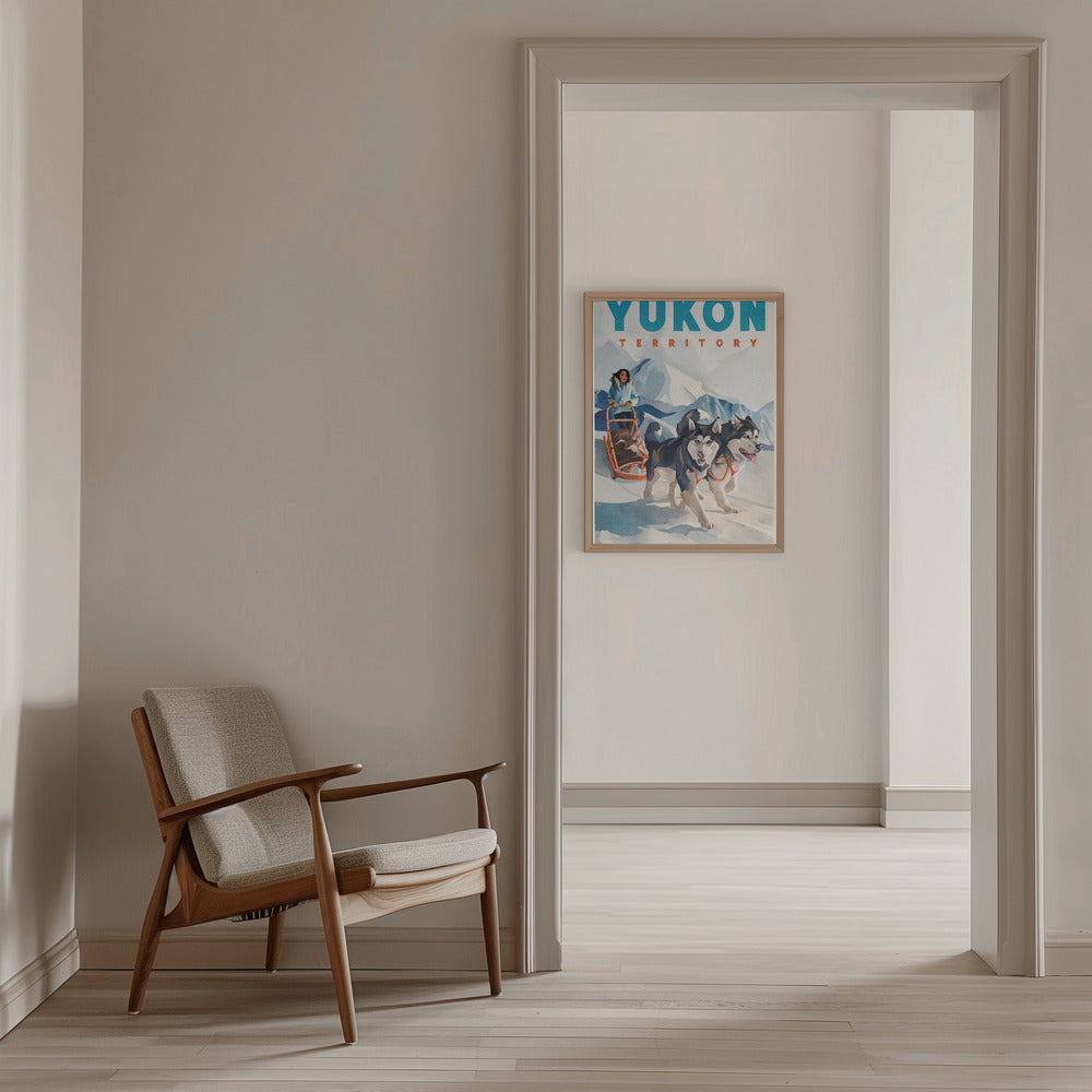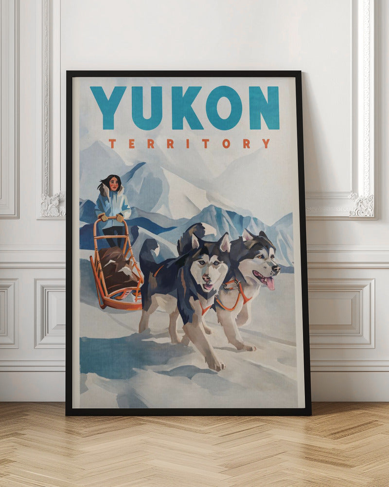 Explore our many print options for Yukon Territory Dog Sled Travel Poster by artist The Whiskey Ginger.