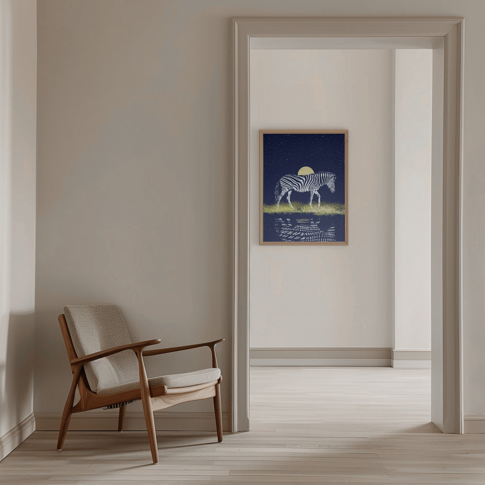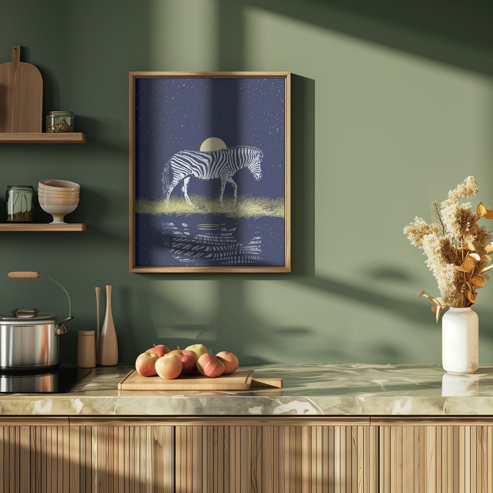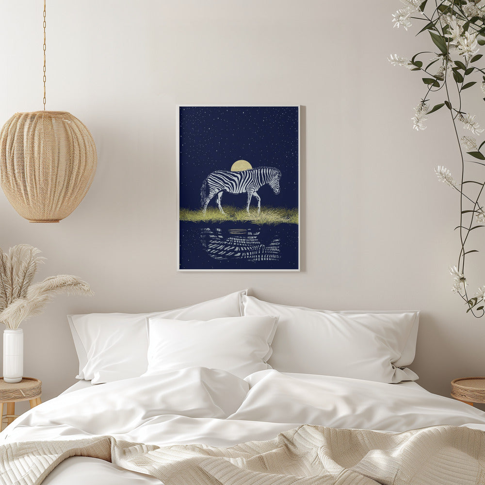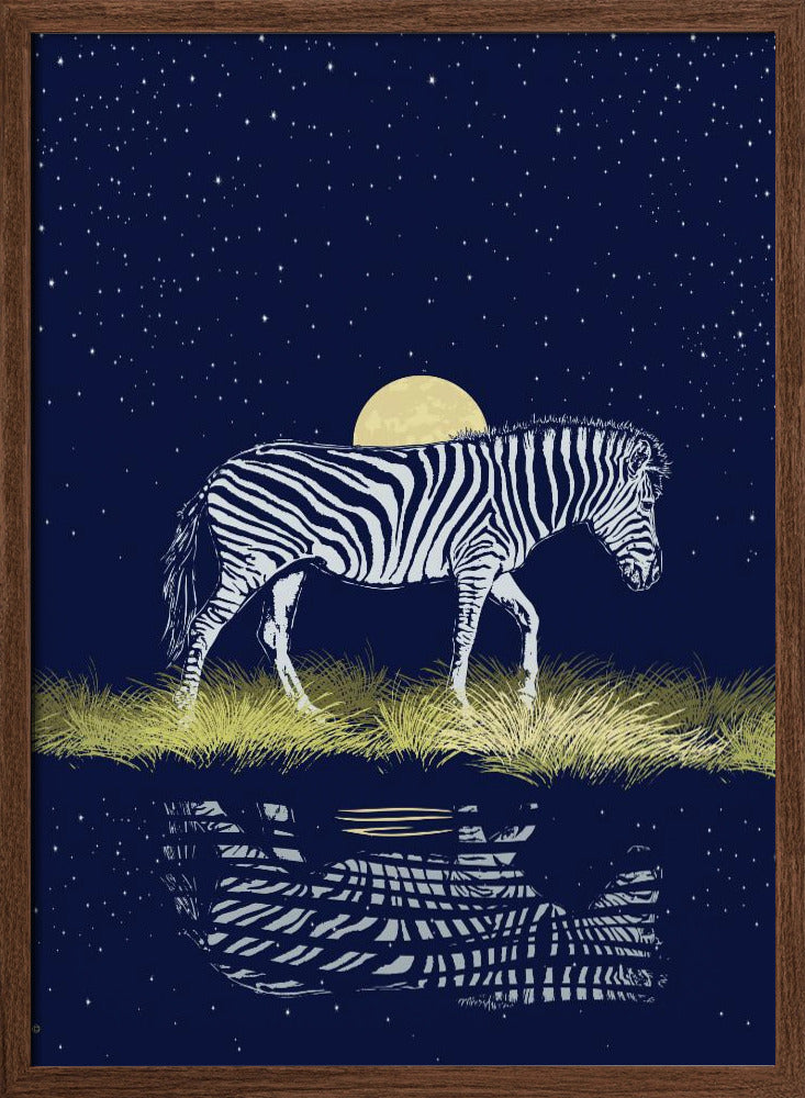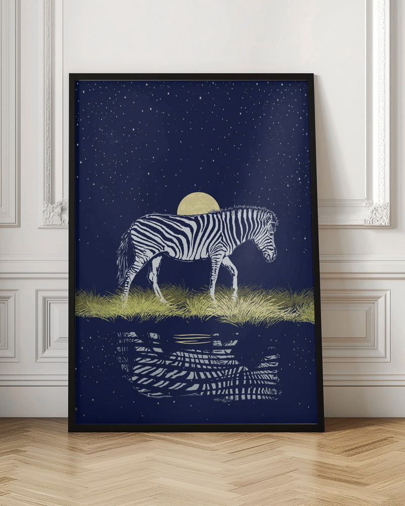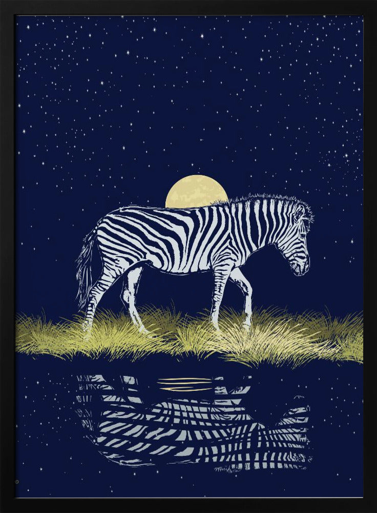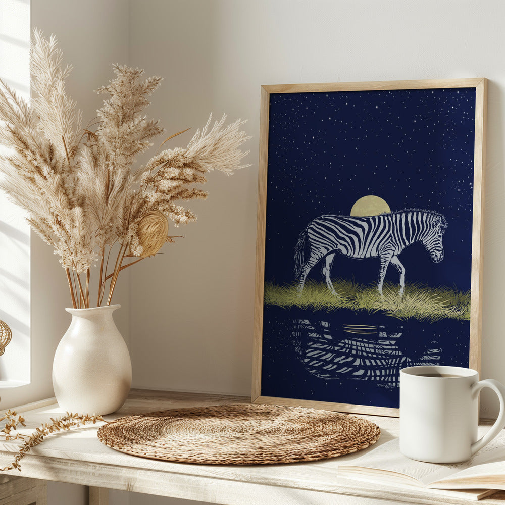Explore our many print options for Zebra Waterhole Moonrise by artist Carlo Kaminski.