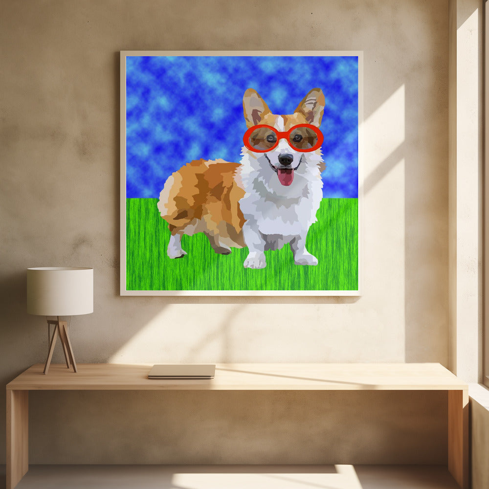 Explore our many print options for Corgi in Sunglasses by artist Lynnda Rakos.