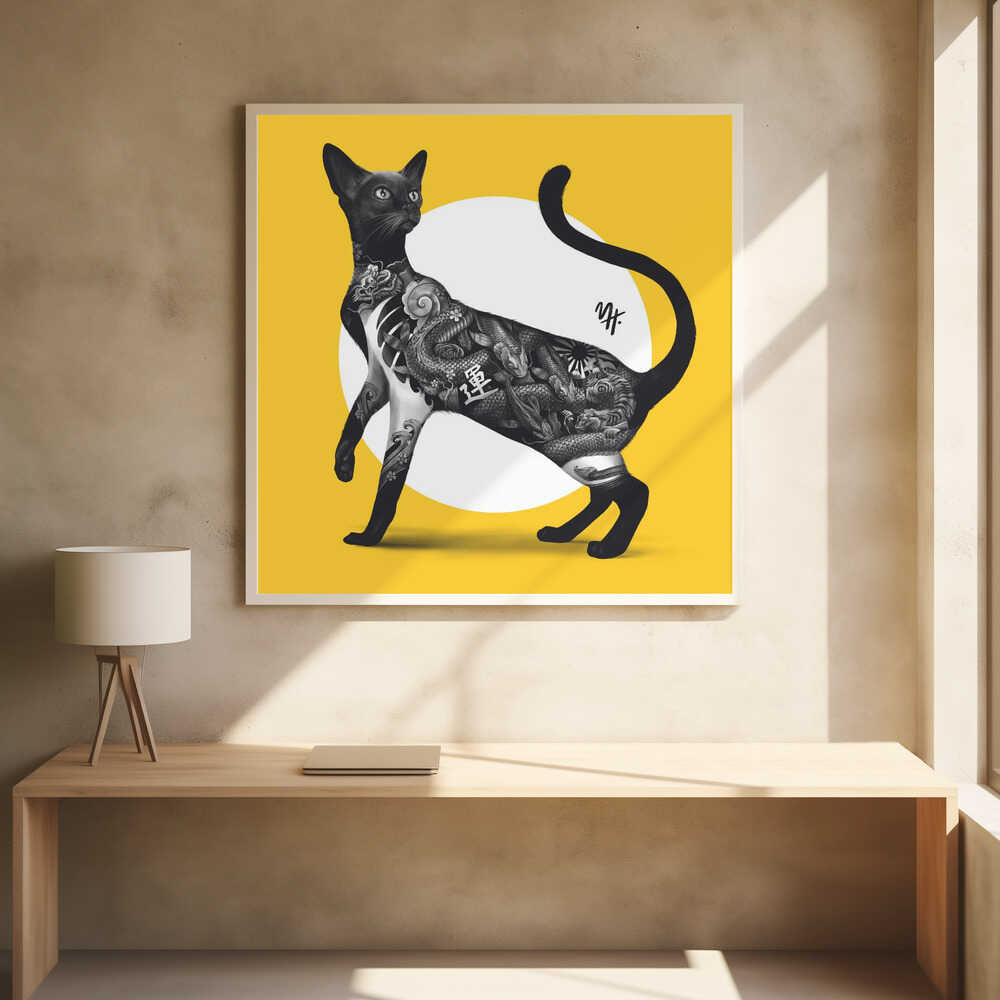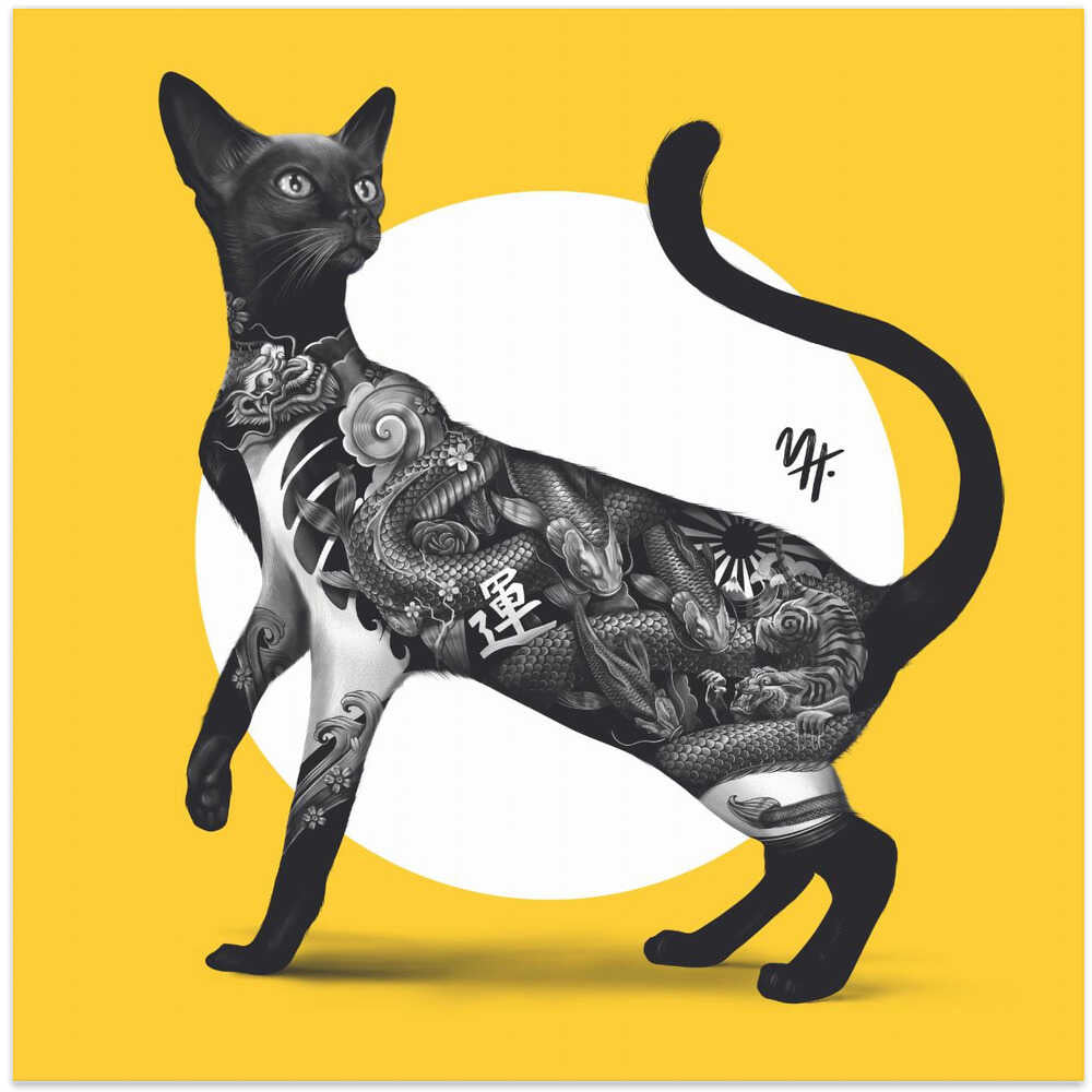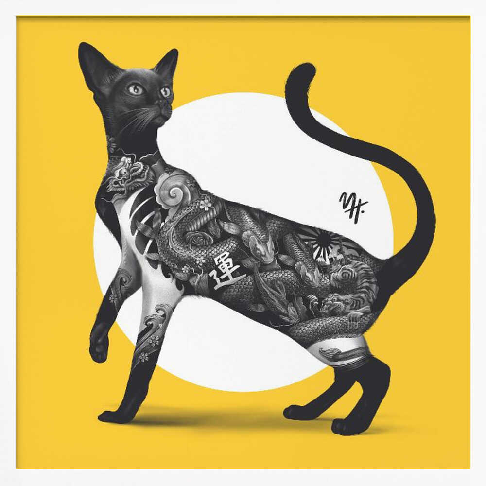 Explore our many print options for Japanese Cat Tattoo Yellow by artist Mark Harrison.