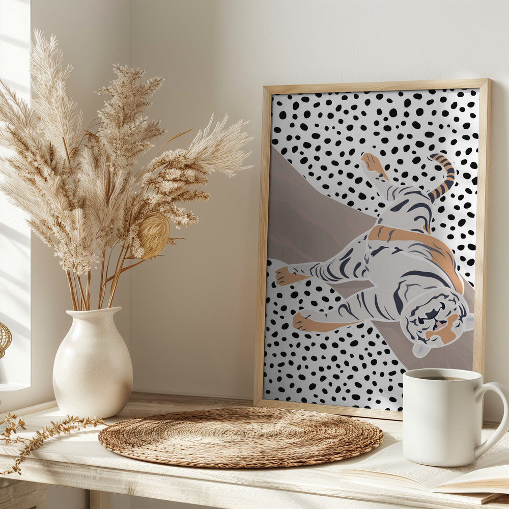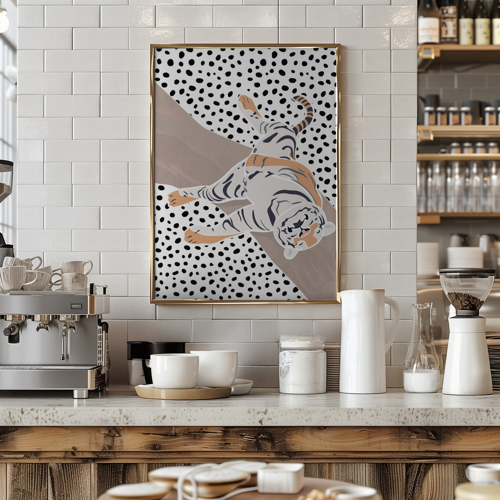 Explore our many print options for Tiger Sleeping polkadots by artist Sarah Manovski.