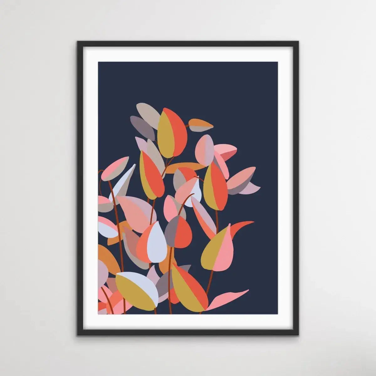 This gorgeous print features warm, autumnal tones and a classic blue background. This is a reprint of an original artwork by Fogarty.