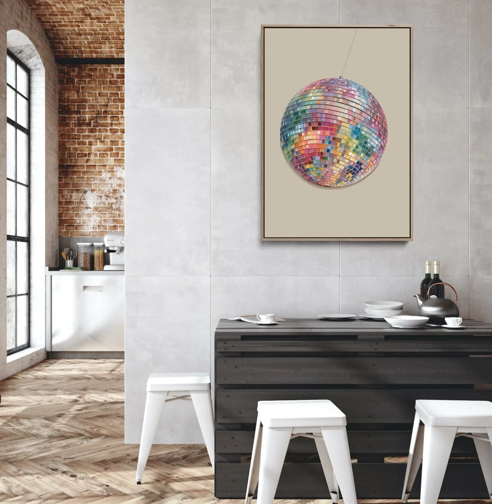 Bring a bit of disco-cool to your space with this fun, colourful mirror ball print.