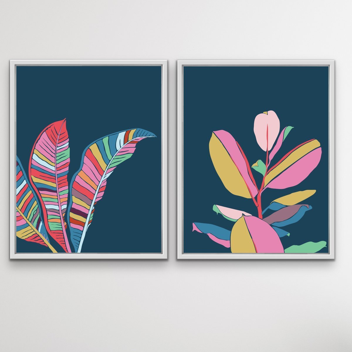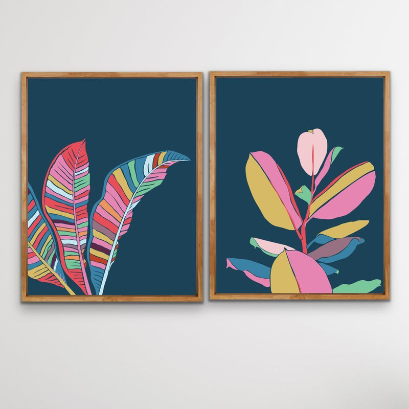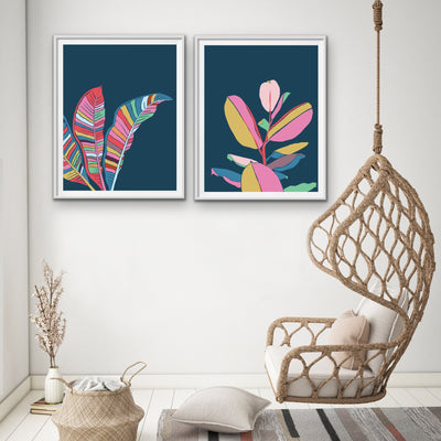 This beautiful, bold two piece set features our turquoise fiddle leaf fig print matched with a banana palm. It's is the perfect contemporary set to brighten up living areas and bedrooms.