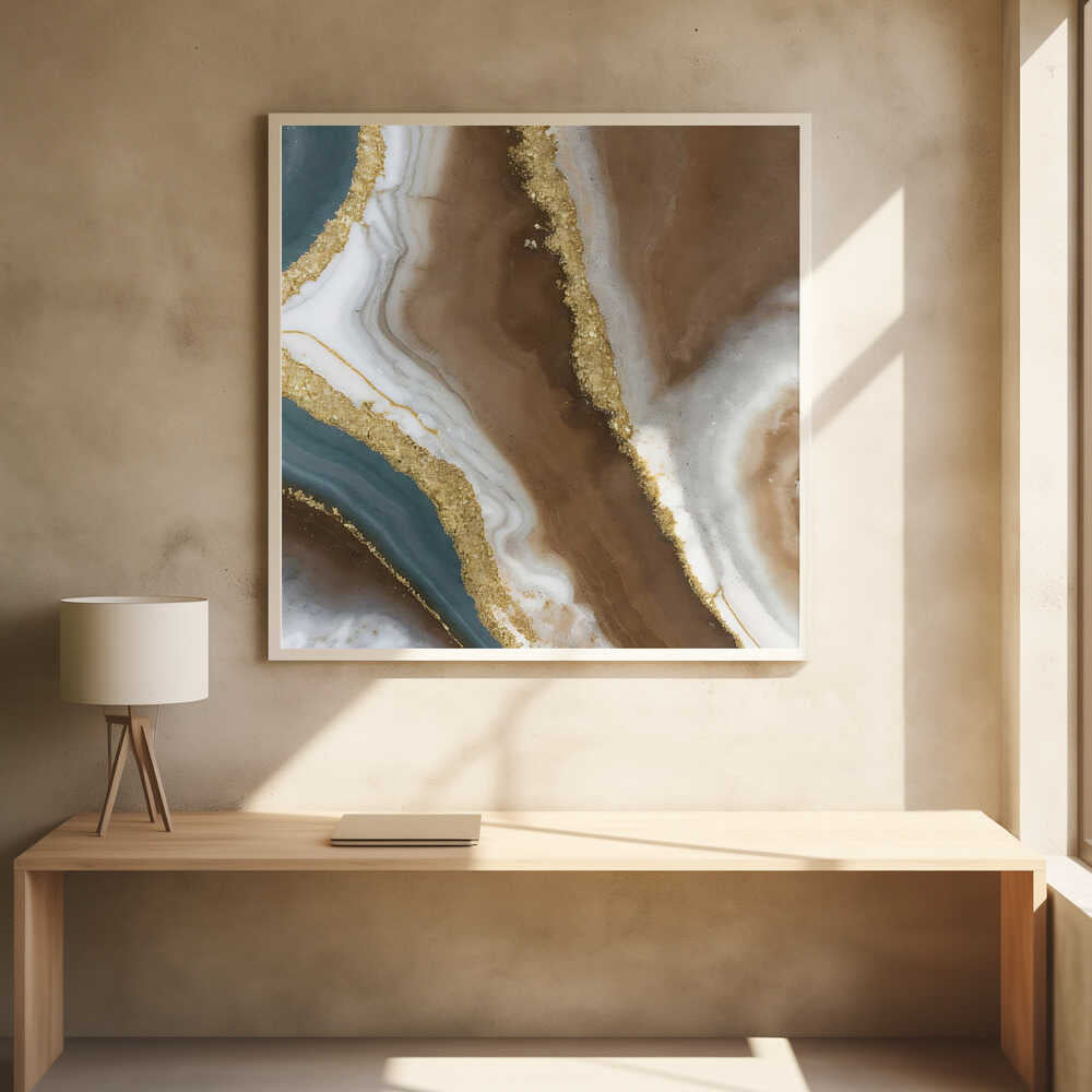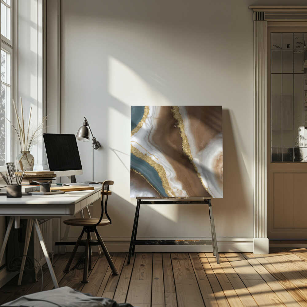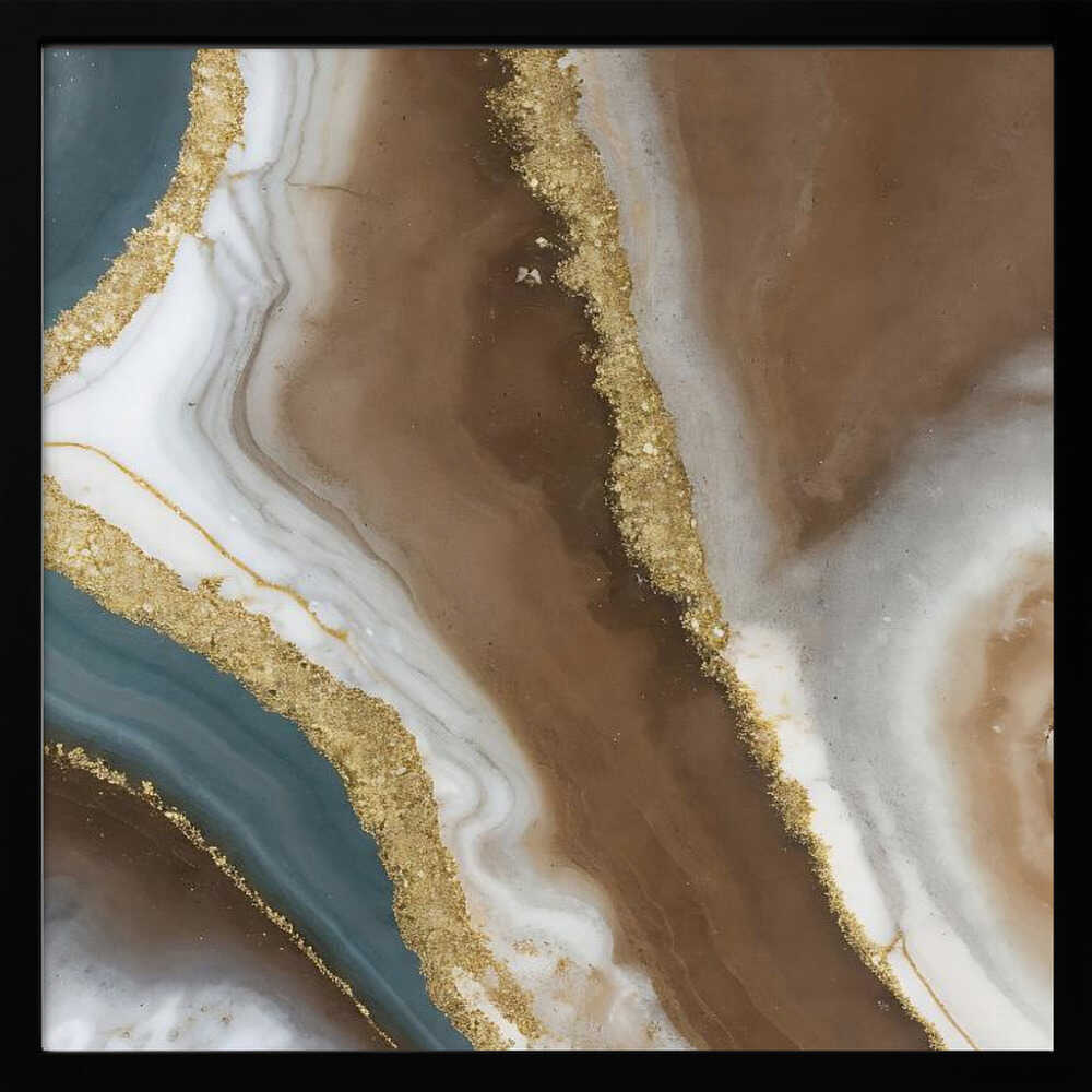 Brown Gold Agate Swirl - Square Stretched Canvas, Poster or Fine Art Print