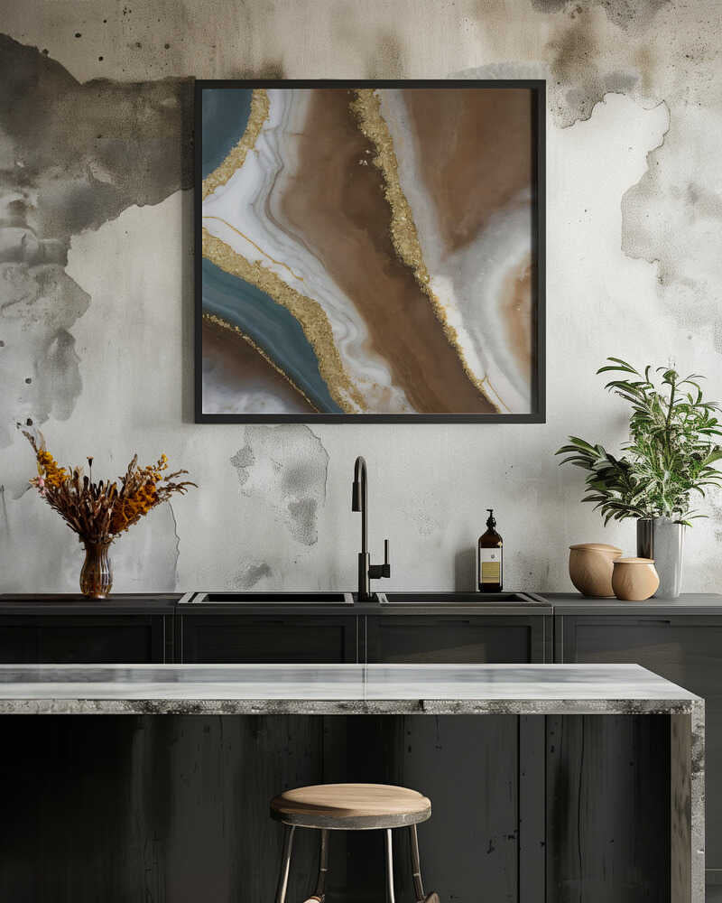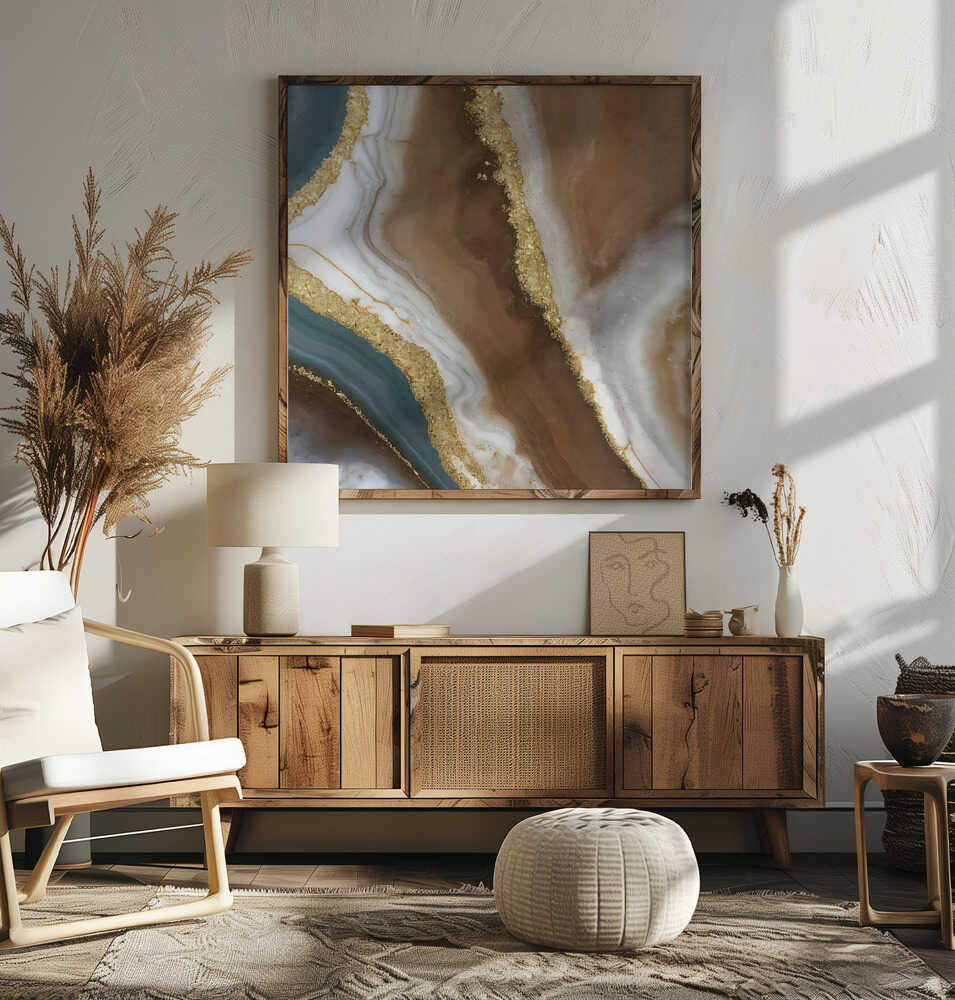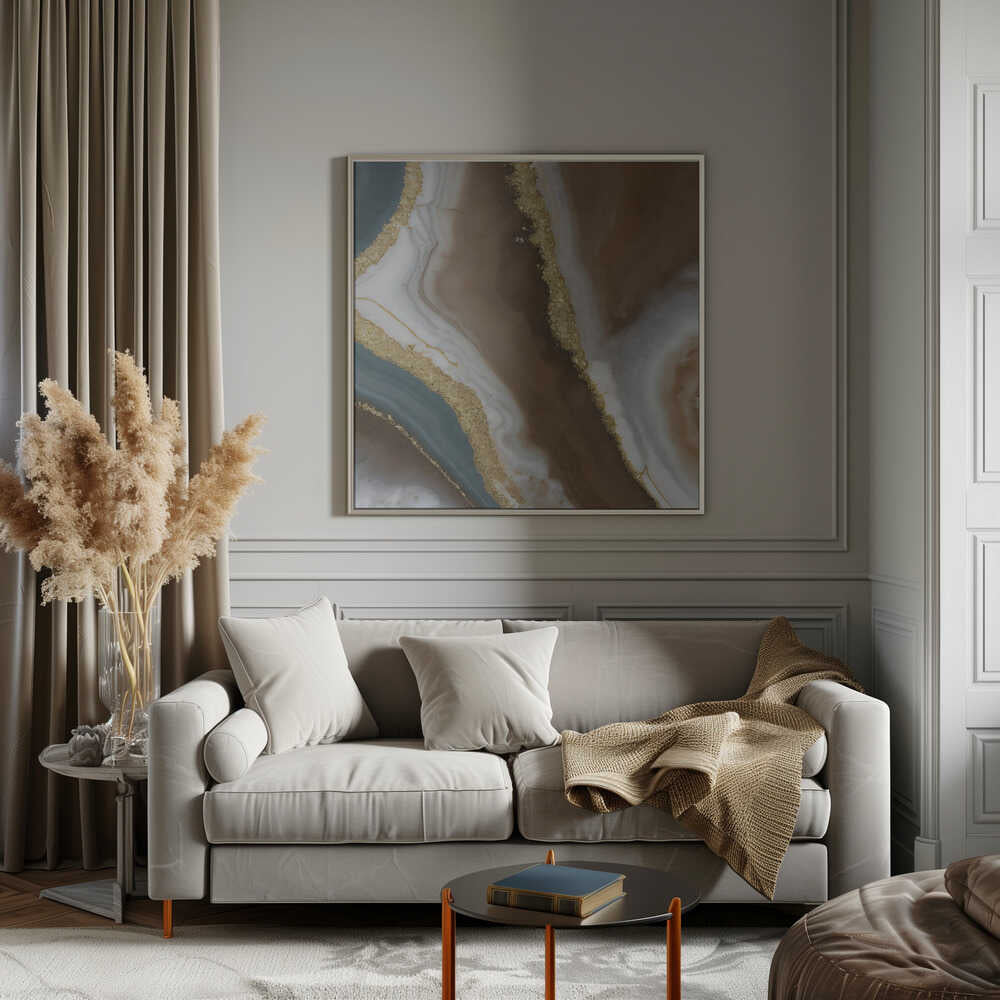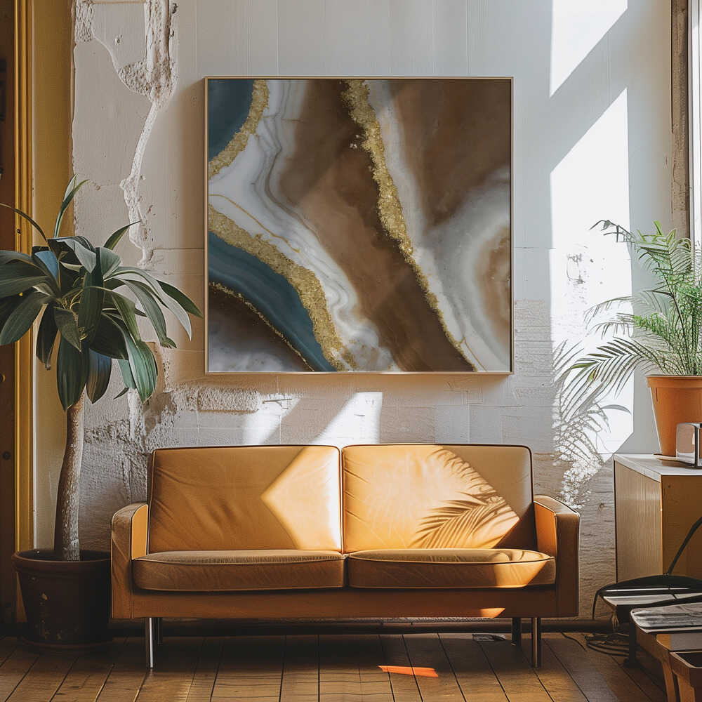 Brown Gold Agate Swirl - Square Stretched Canvas, Poster or Fine Art Print