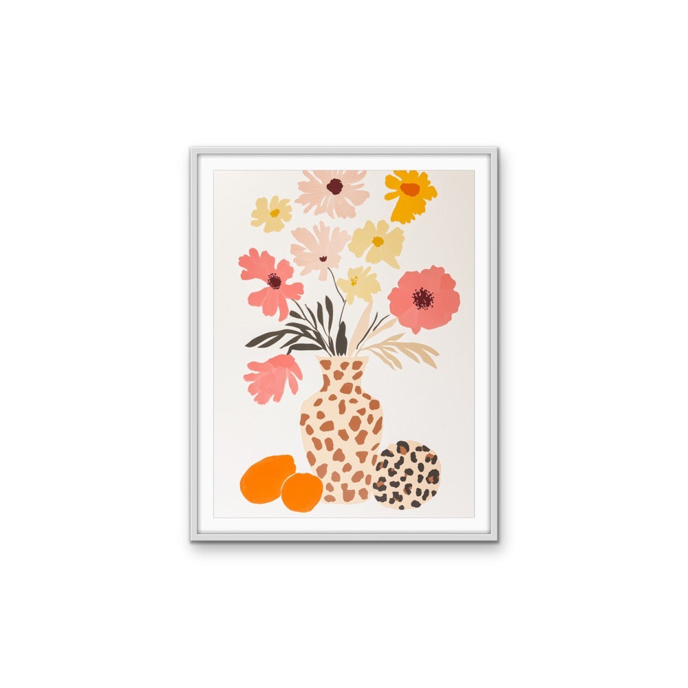 Enjoy our minimal yet colour-filled flower vase print.