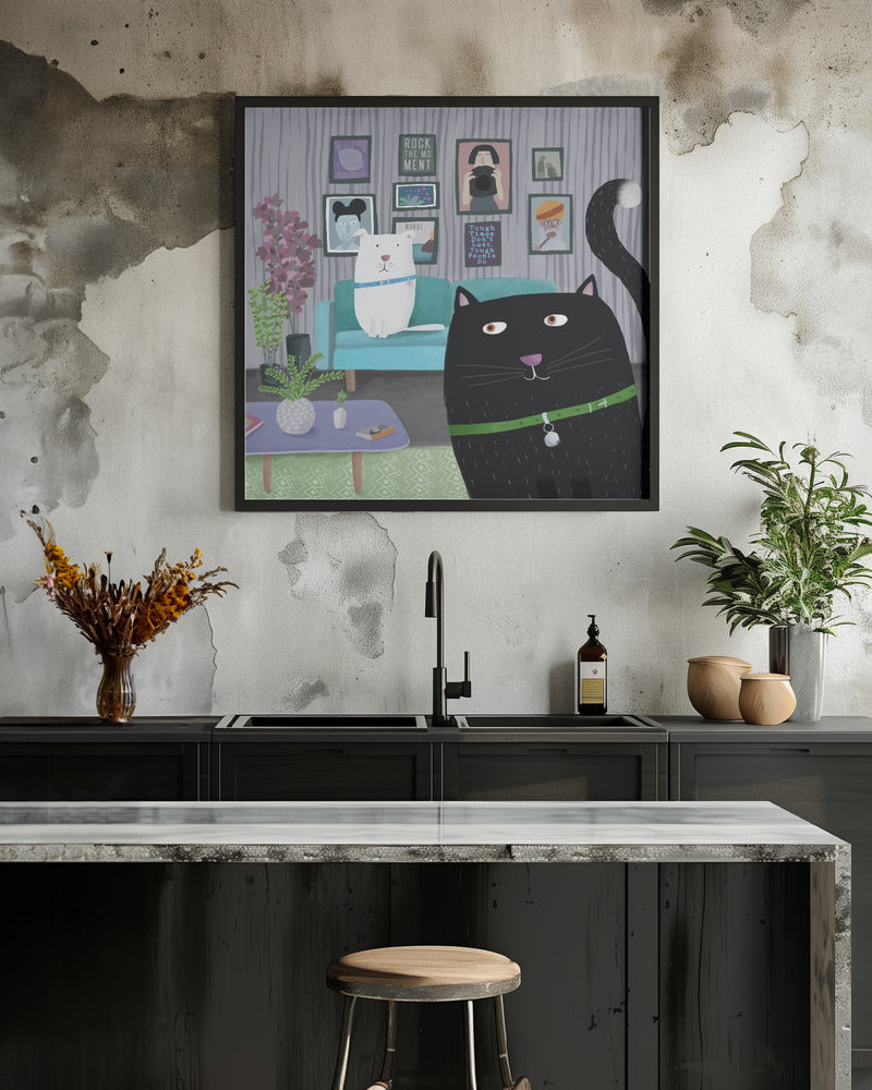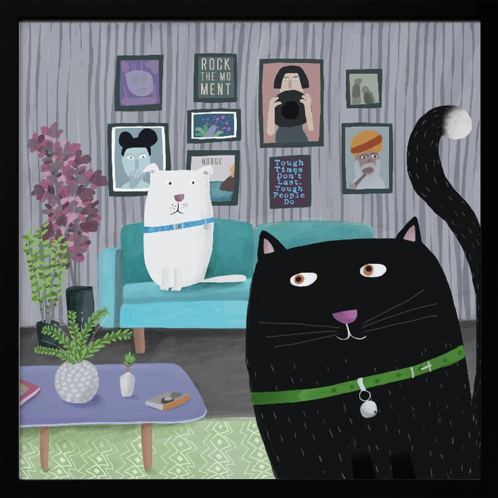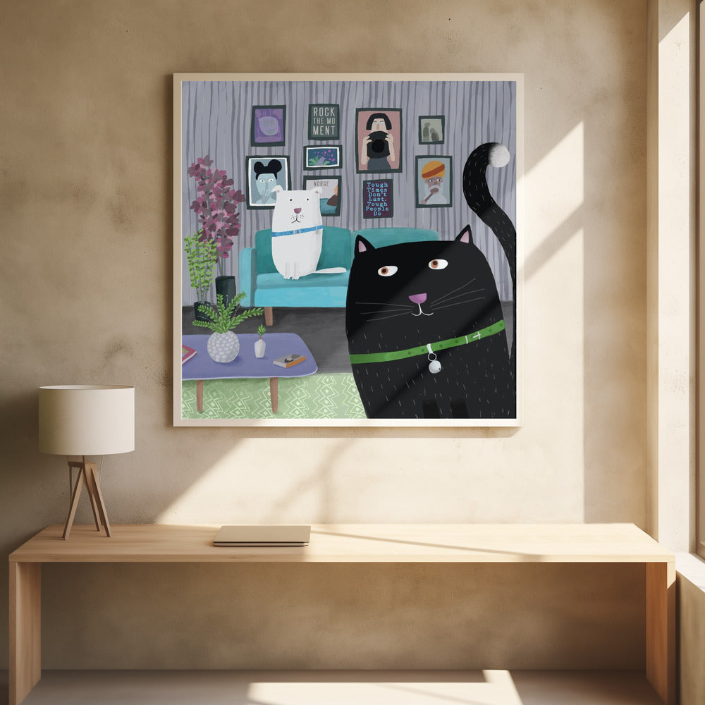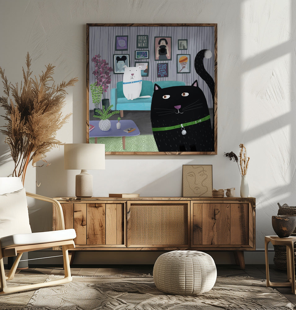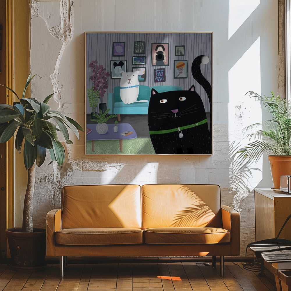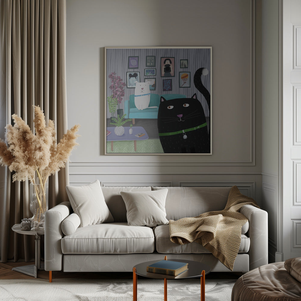 Explore our many print options for Black Cat and White Dog in Trendy Interior by Carla Daly by artist Carla Daly.