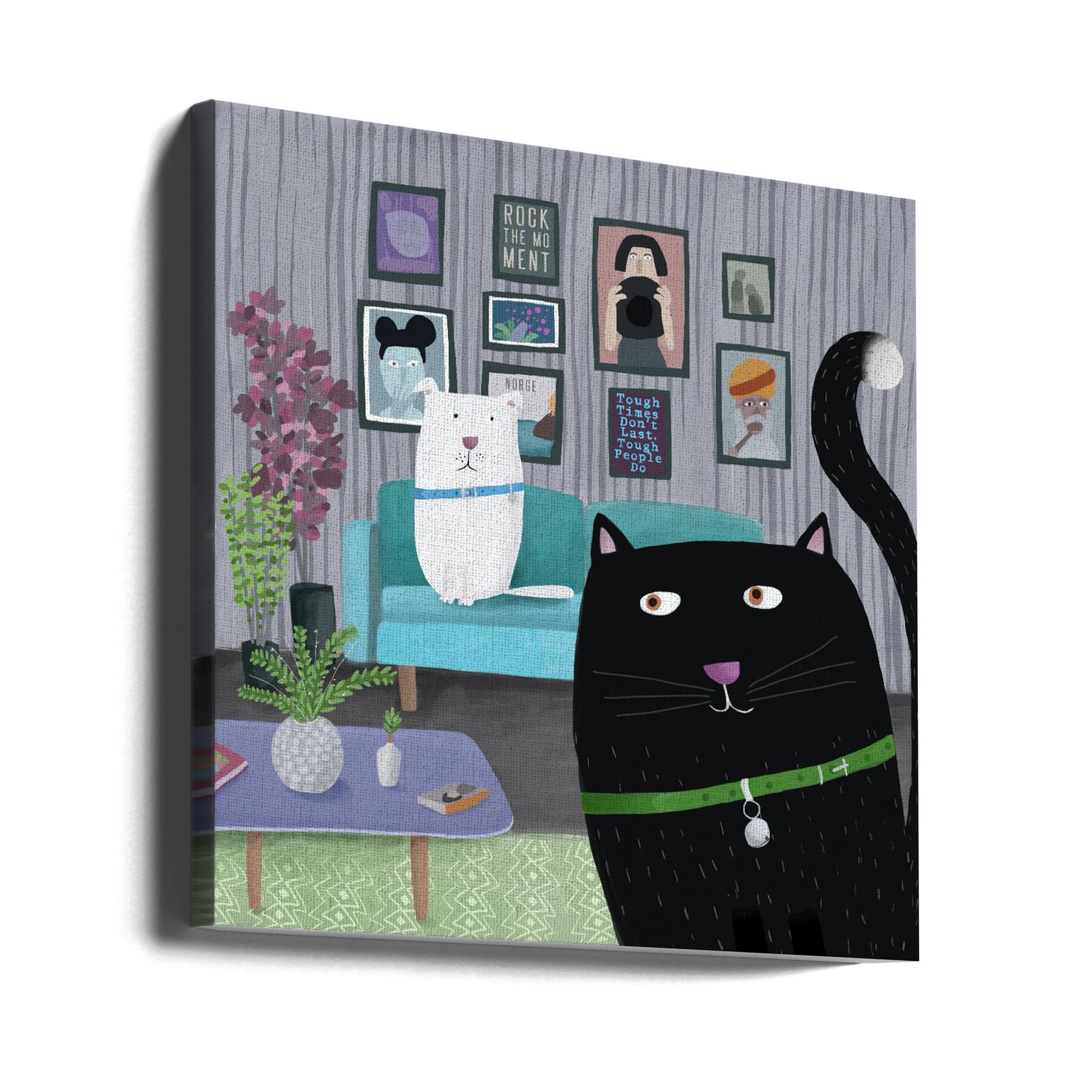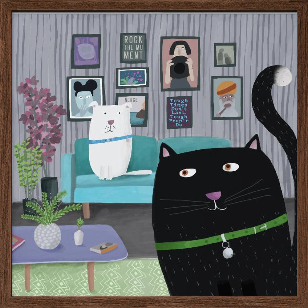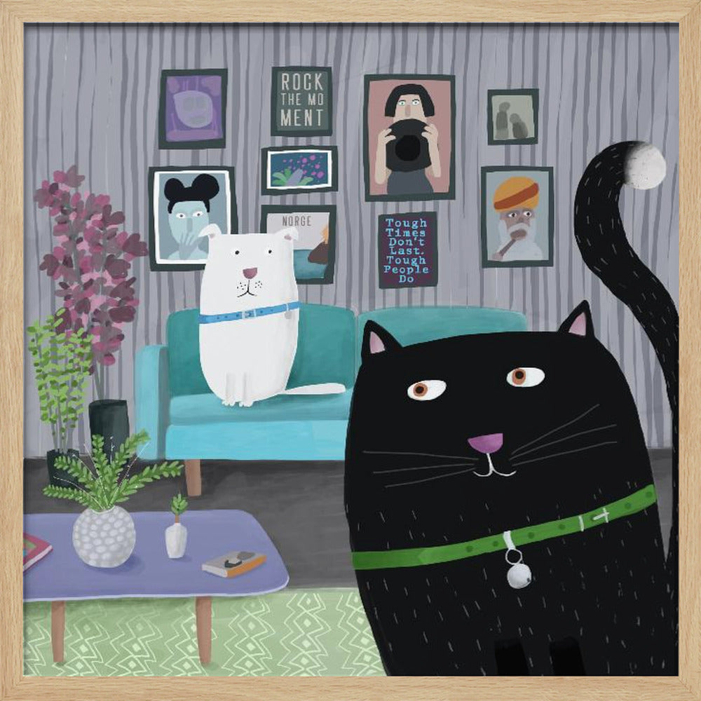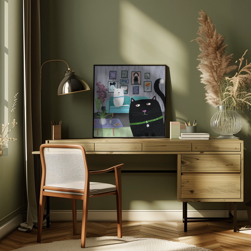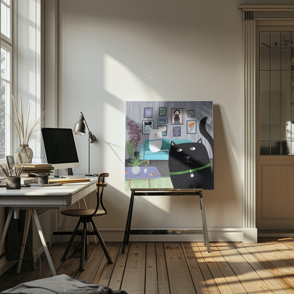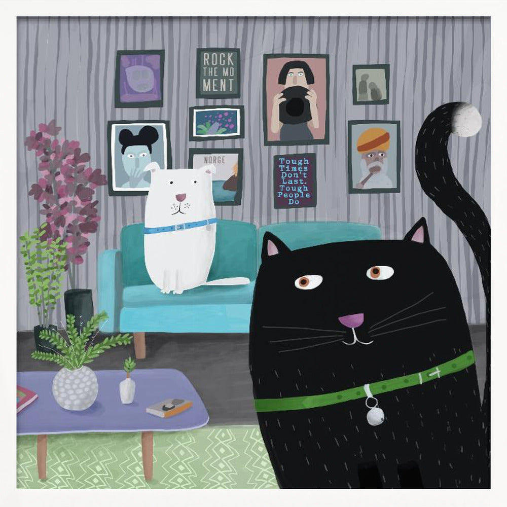 Explore our many print options for Black Cat and White Dog in Trendy Interior by Carla Daly by artist Carla Daly.