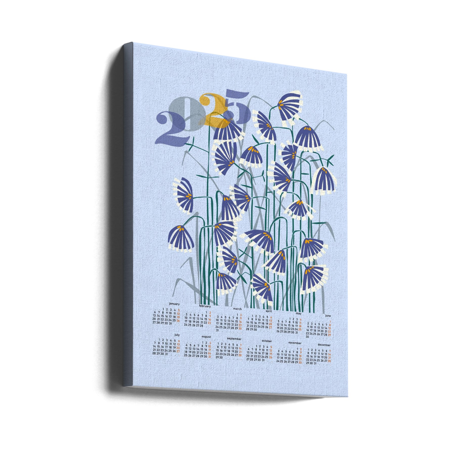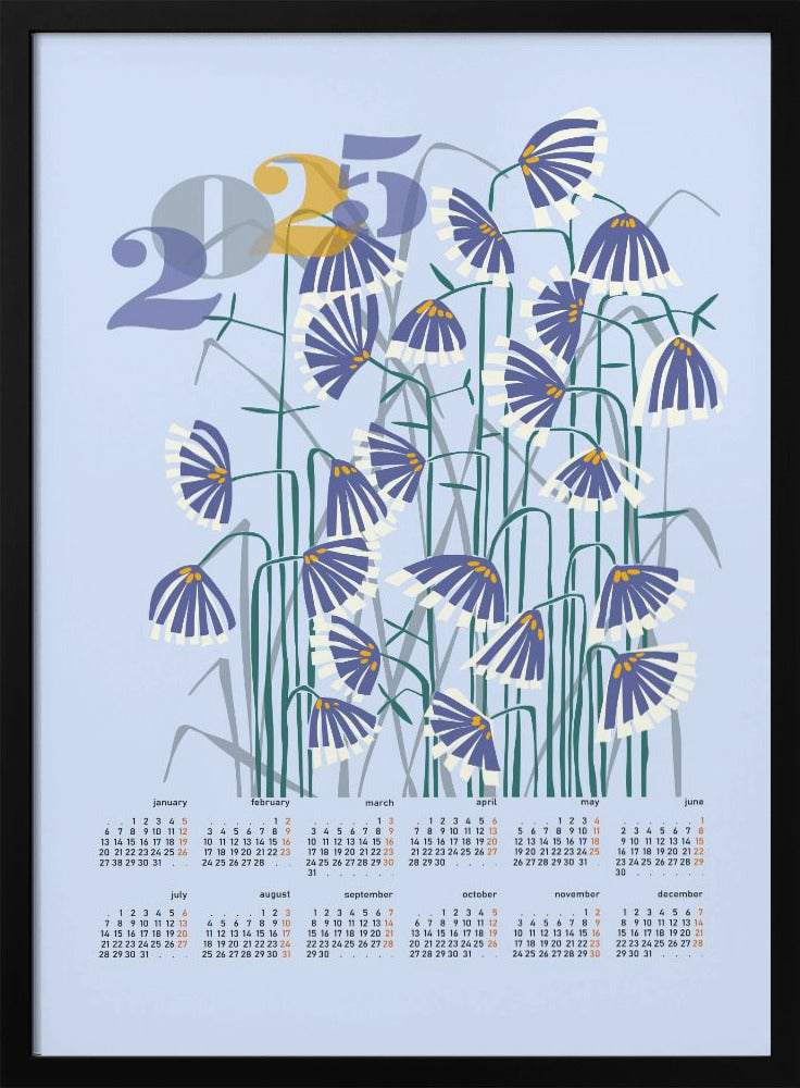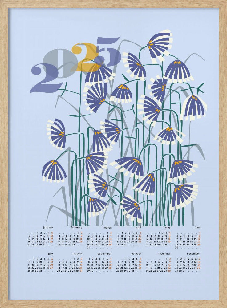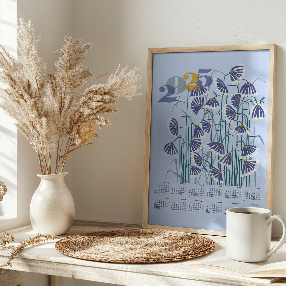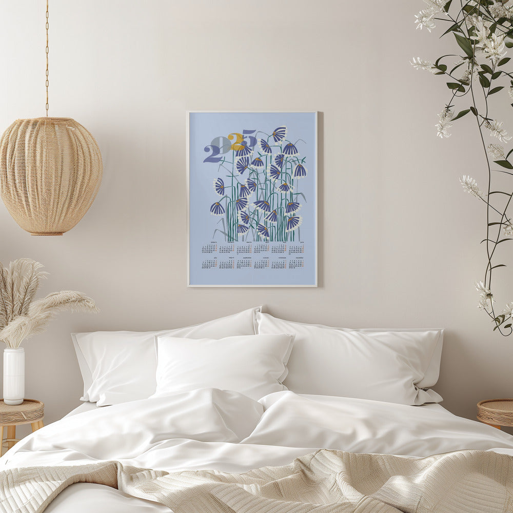 Explore our many print options for calendar 2025 Linocut flowers light by artist Annick.