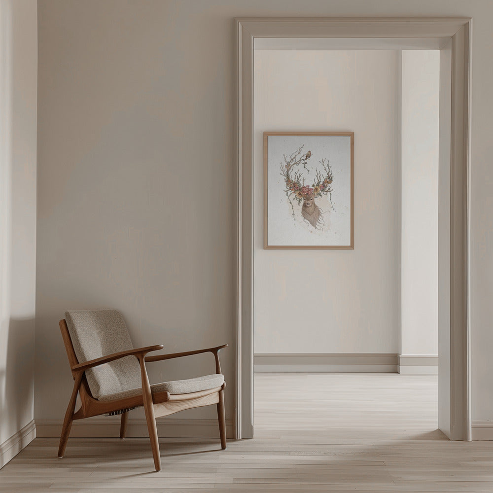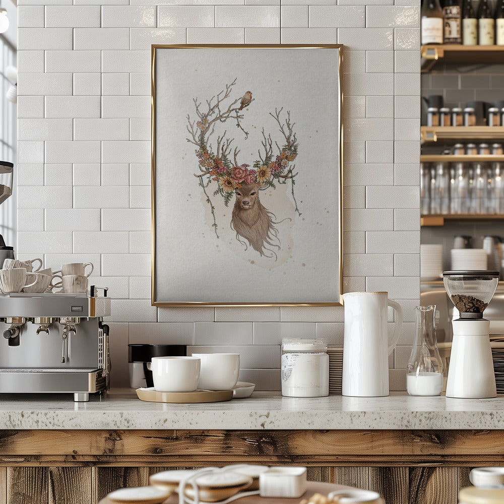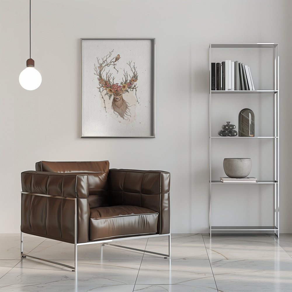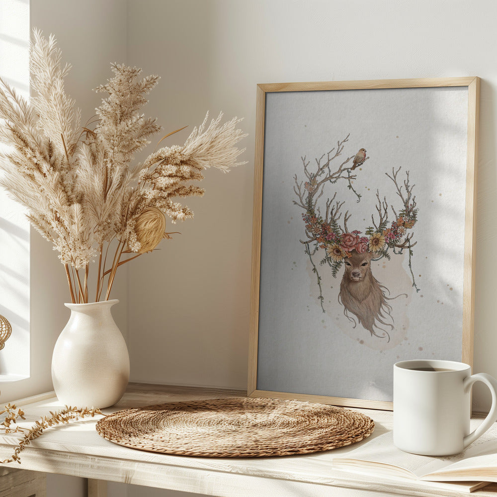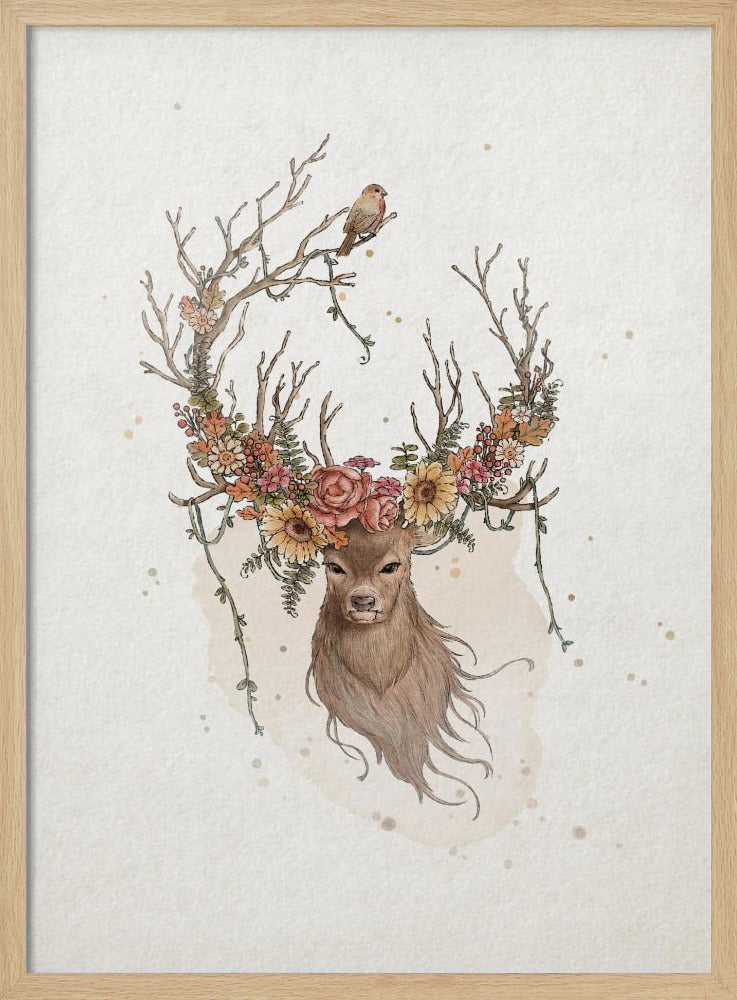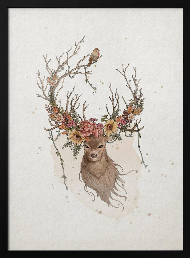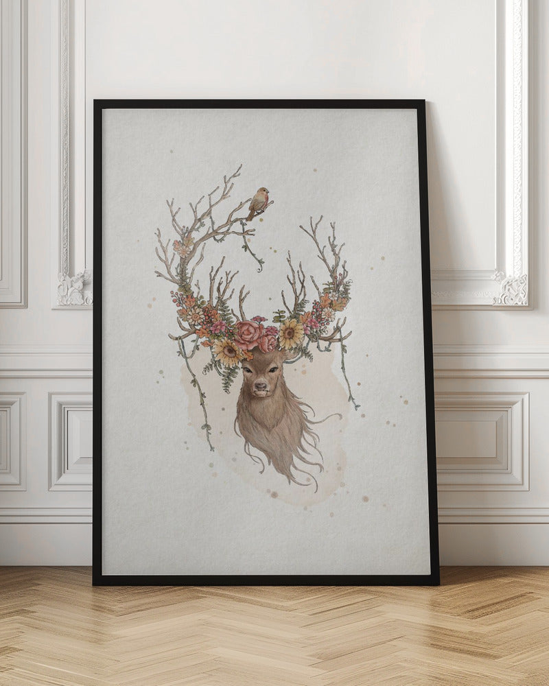 Explore our many print options for Deer and flowers by artist Xuan Thai.