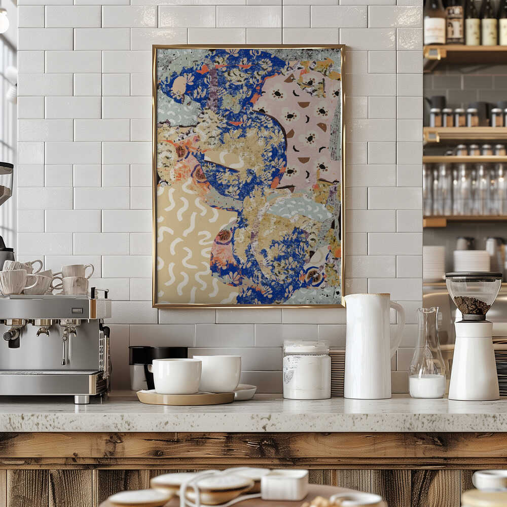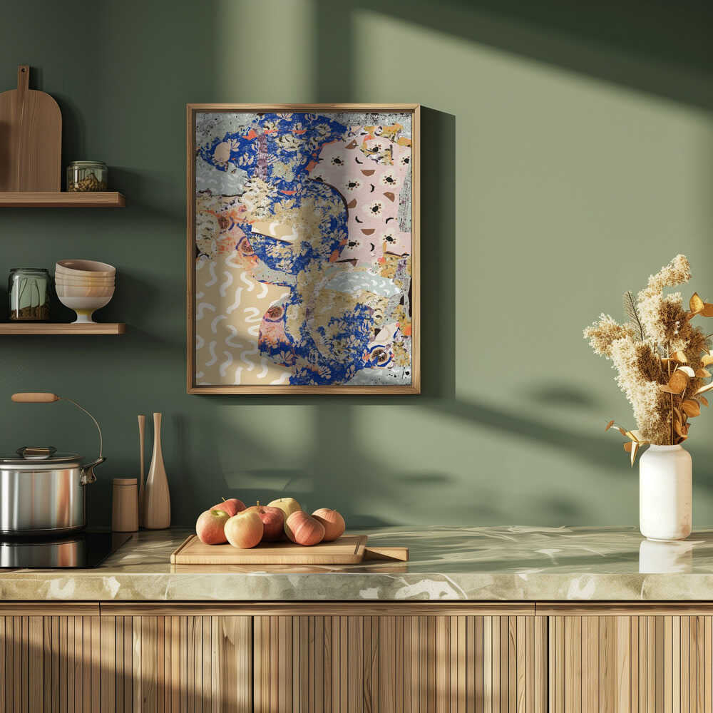 Happy Hour - Palm Plant Graphic Blue Colourful Abstract Original Artwork Wall Art Print
