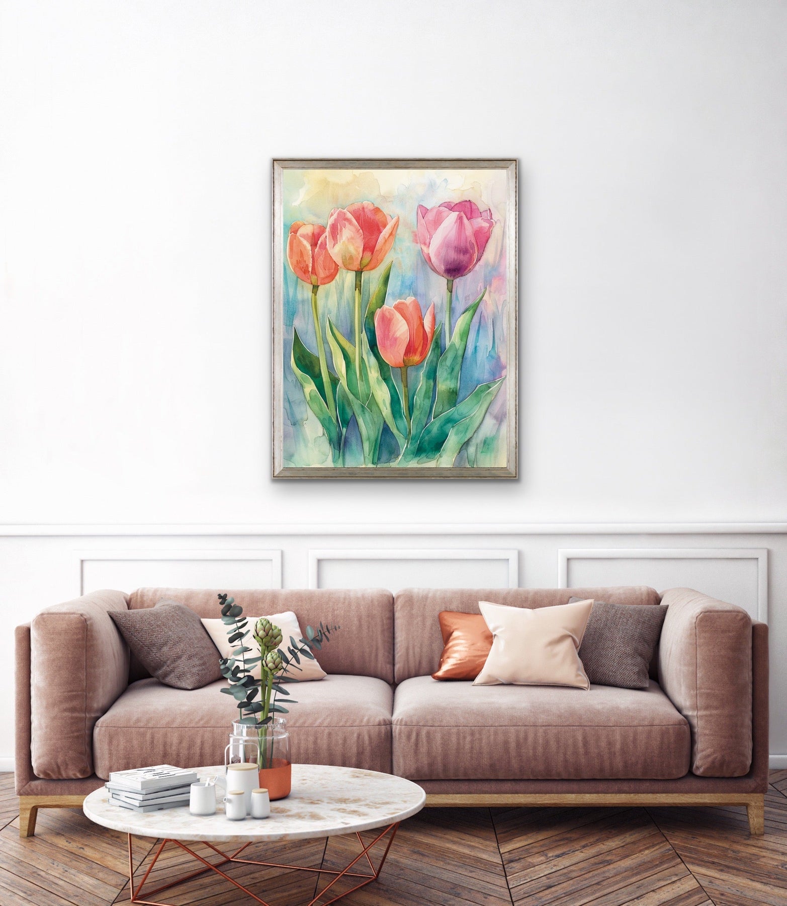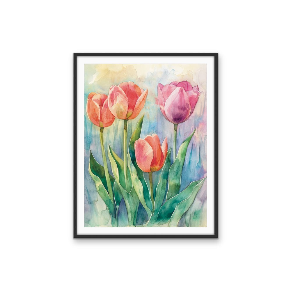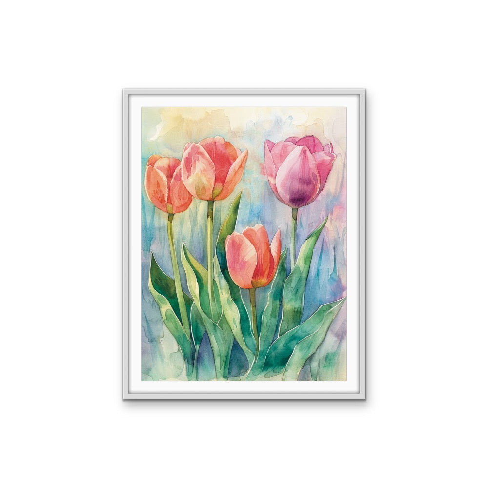 Get lost in the stunning colours of this tulip flower watercolour print.