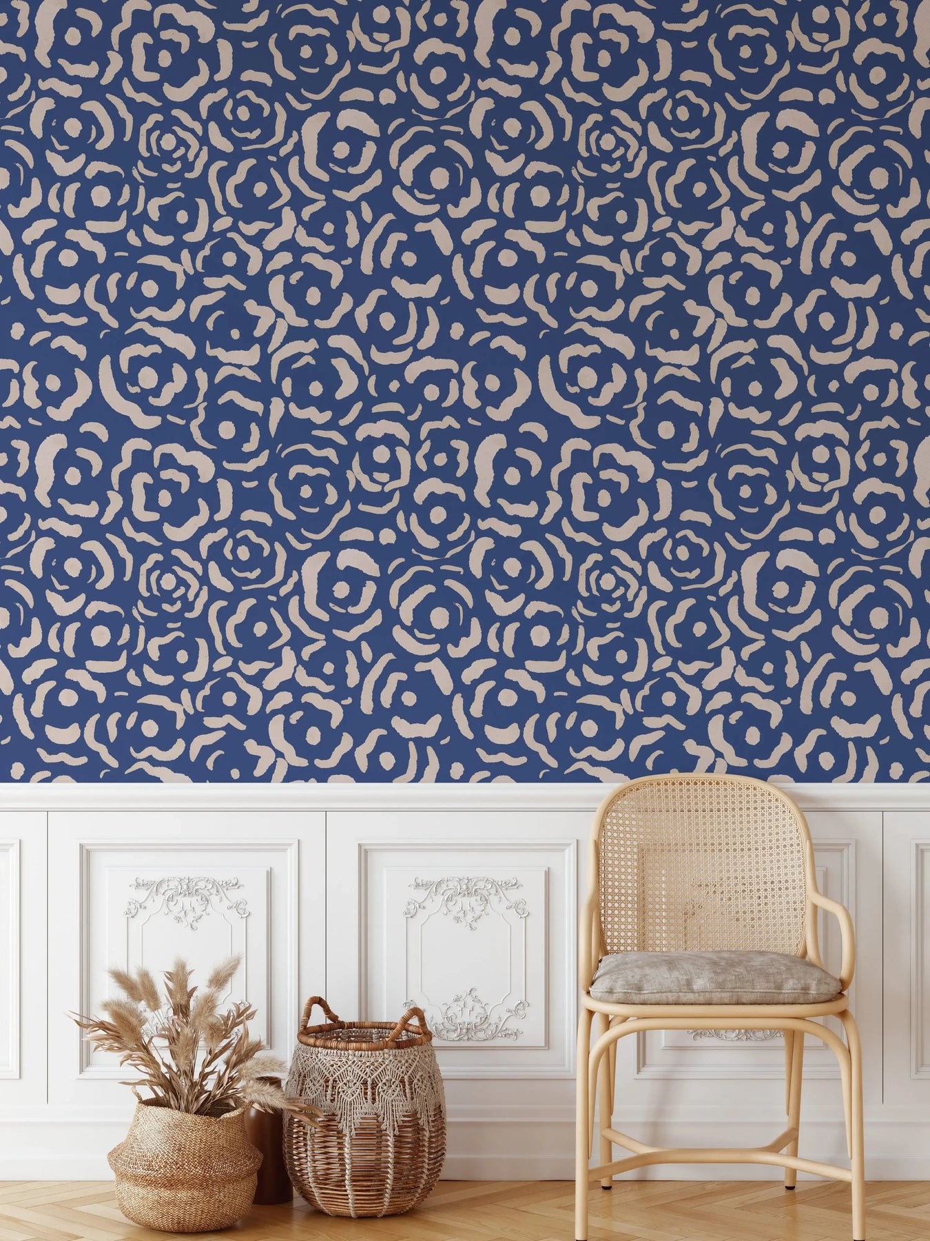 This blue and white, Matisse-inspired wallpaper takes a traditional look and feel and gives it a contemporary twist.