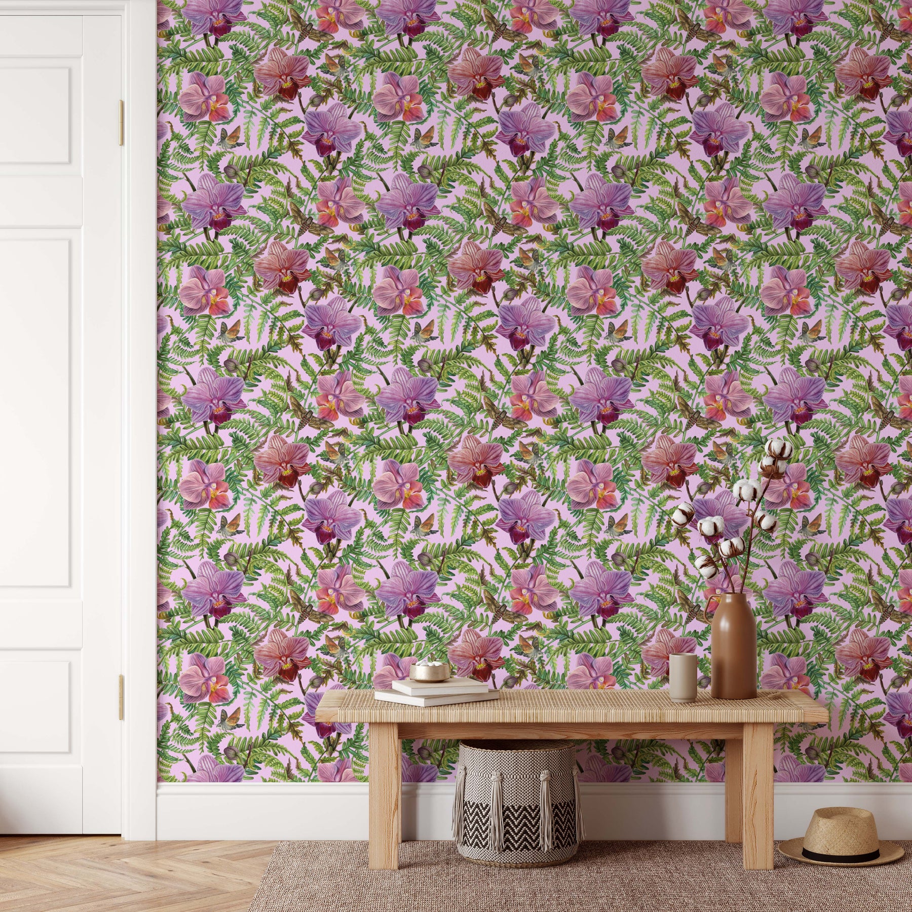 Orchid & Fern - Pink Orchid and Greenery Watercolour Wallpaper