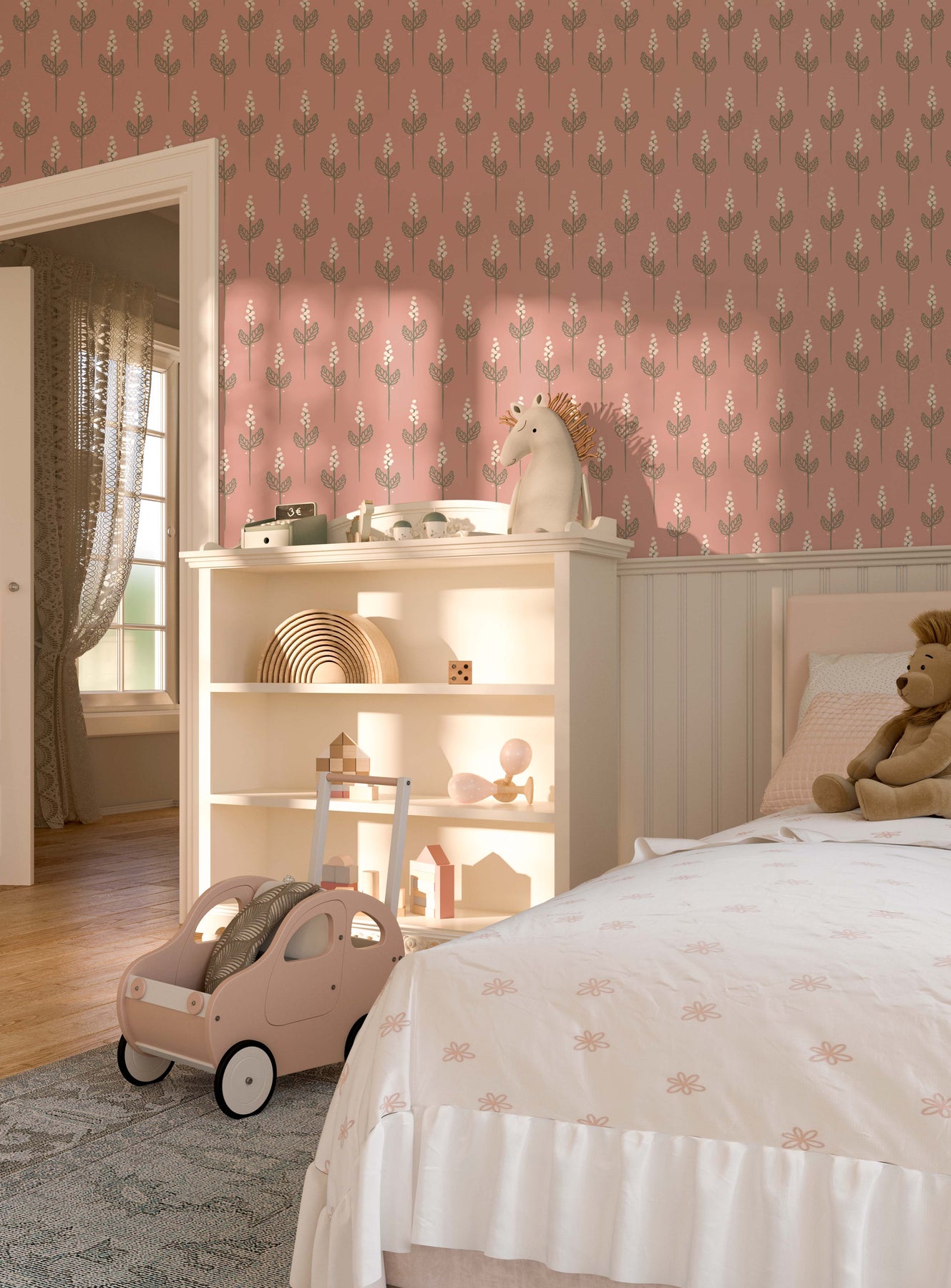 'Sprouting' - Pink & White Floral Removable Wallpaper