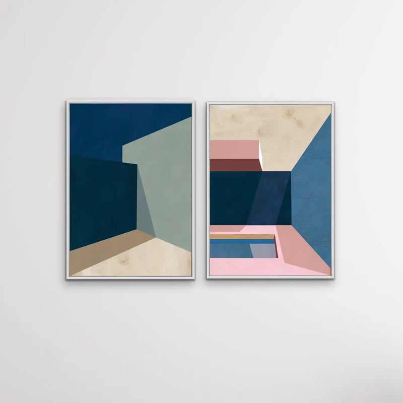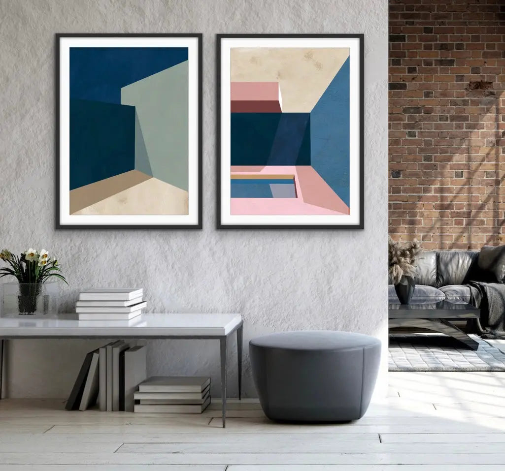 Timeless and classic, this two piece print set is features original geometric artworks with bold colours.