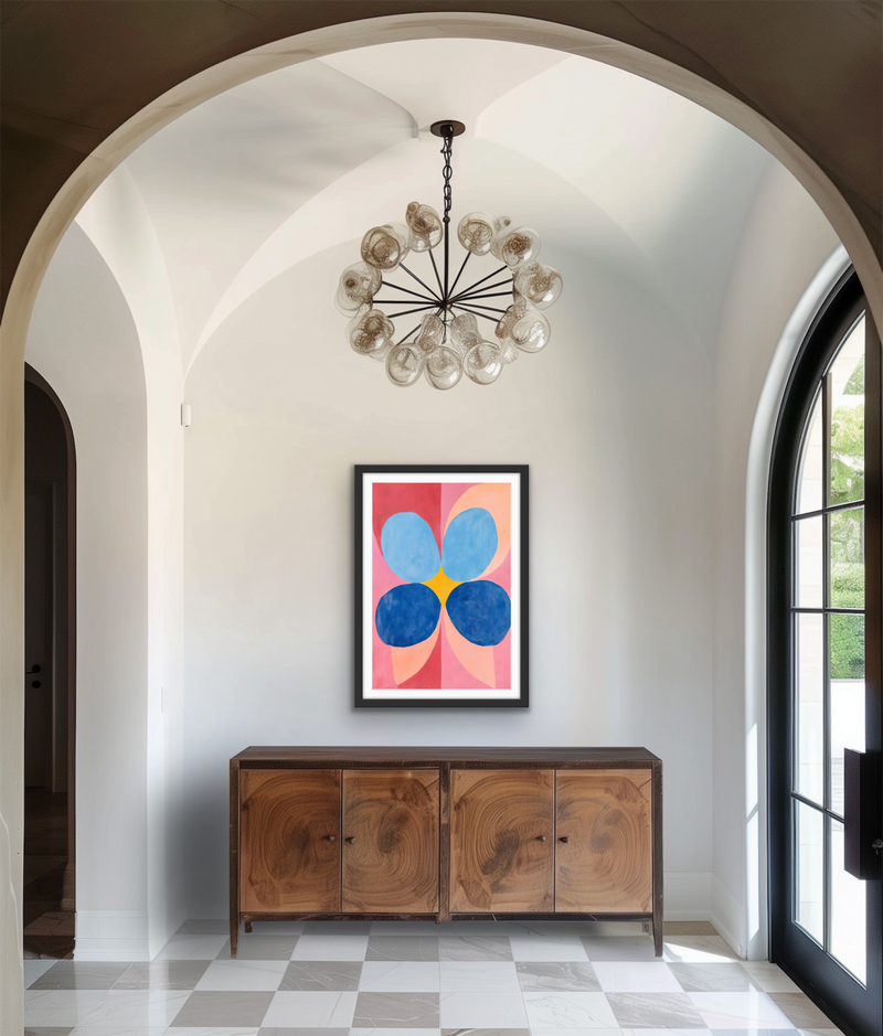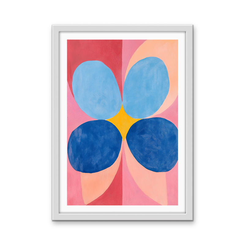 Explore our many print options for 'Deconstructed Flower', a bright and inviting abstract and geometric artwork.