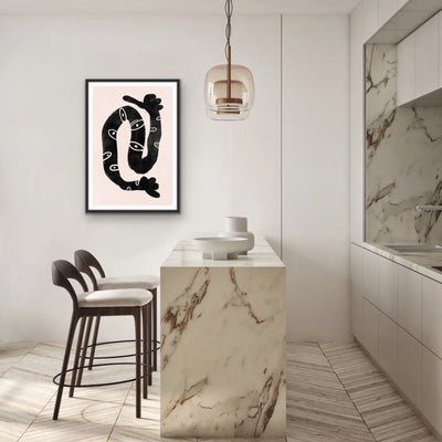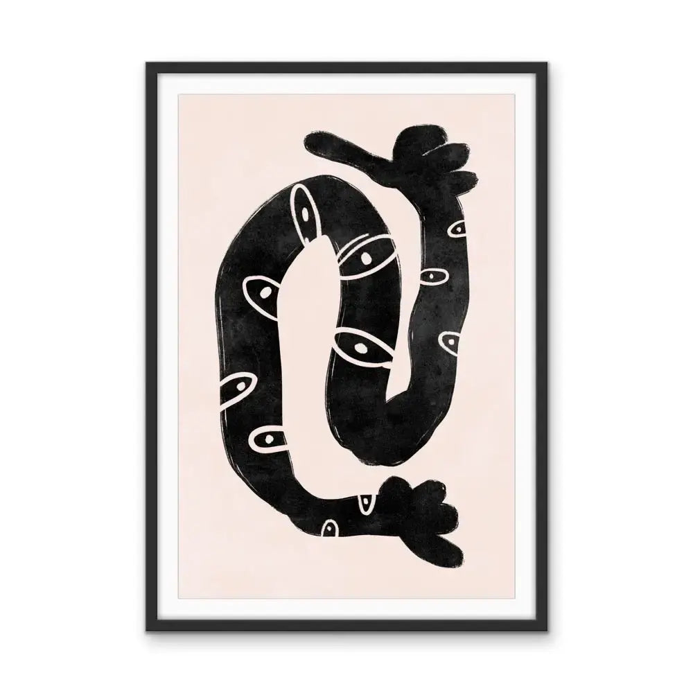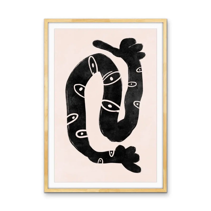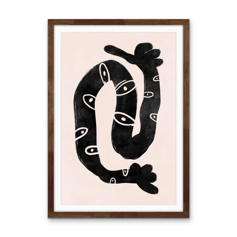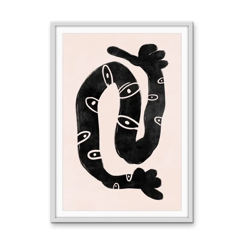 Serpent features a slightly pink background, with a contemporary artwork featuring a snake.