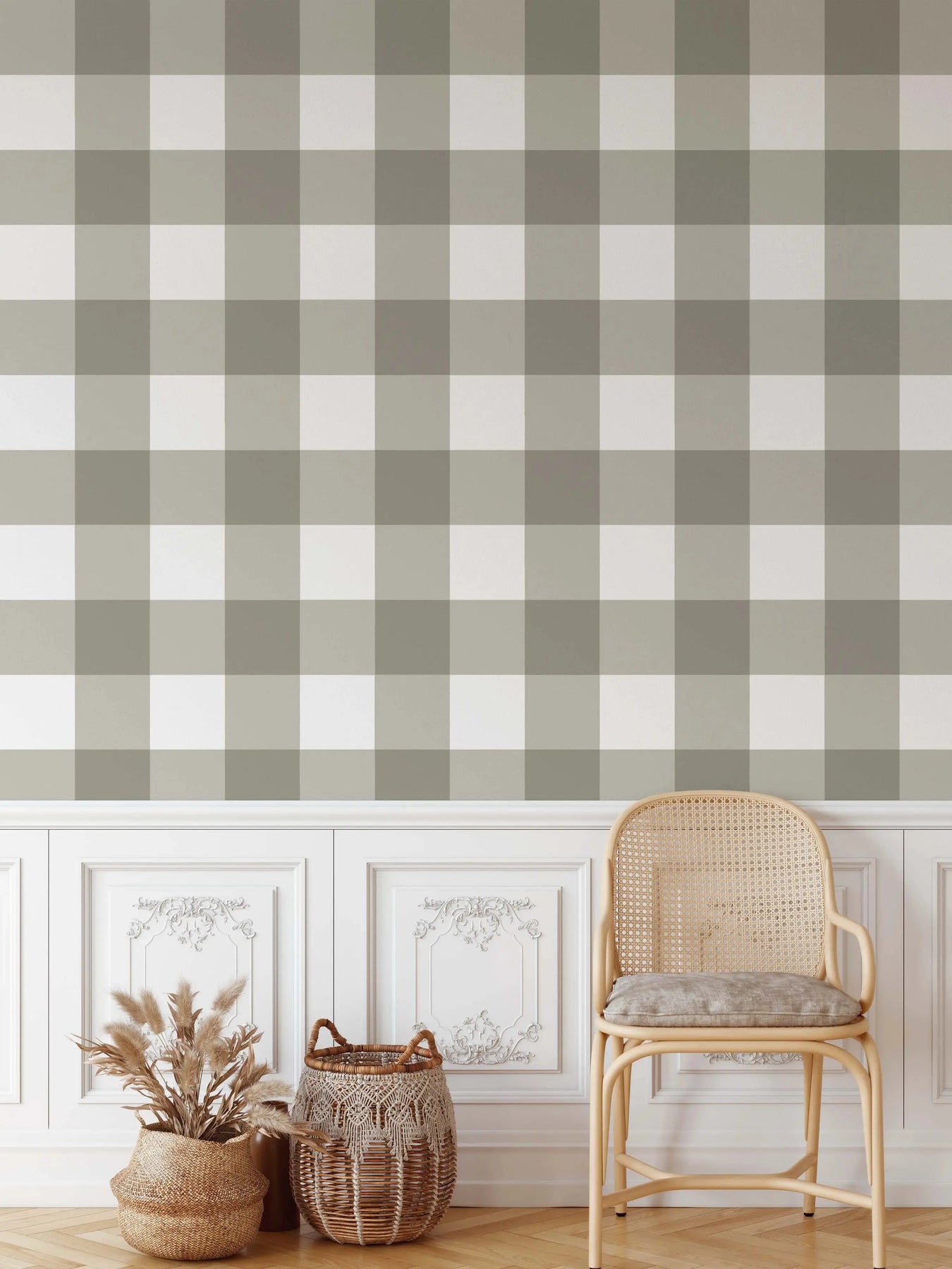 Gingham Wallpaper In Eucalyptus Green - Peel and Stick Plaid Australian Removable Wallpaper