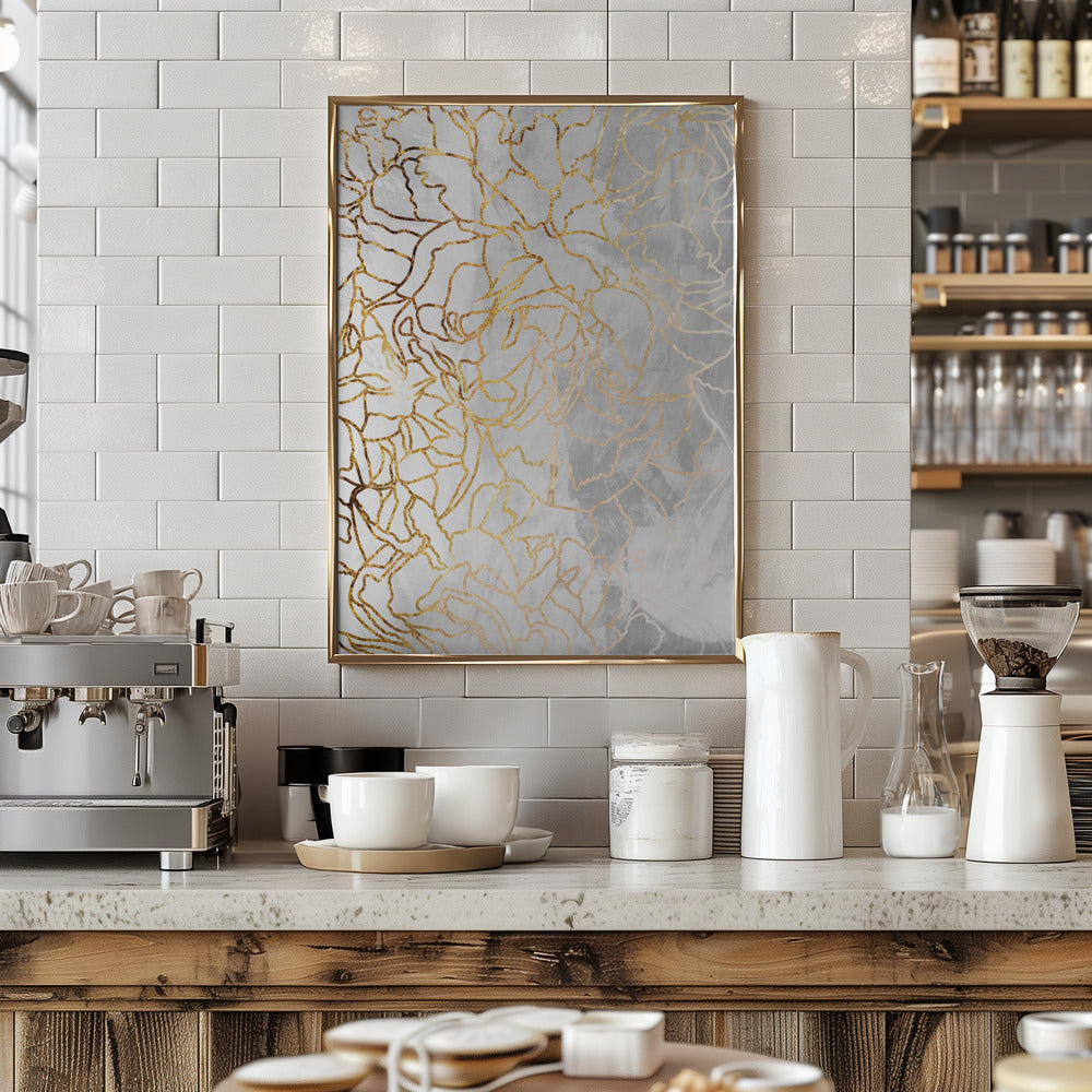 Explore our many print options for Abstract gold peonies line art concrete by artist Sarah Manovski.