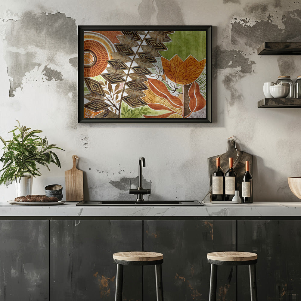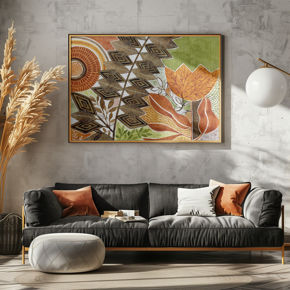 Framed Art Prints: Our framed art prints are printed onto a good quality textured art paper. A white border surrounds the design. A solid timber frame in one of four colours and a plexiglass front complete the piece.